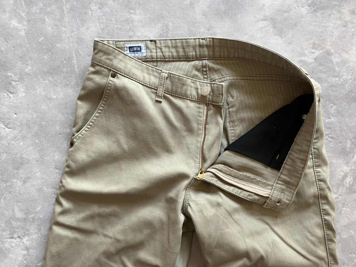 フロント:スラッシュポケット、バック:パイピング仕上げのWポケット仕様で、落ち着いた大人のデザインに仕上がっています。