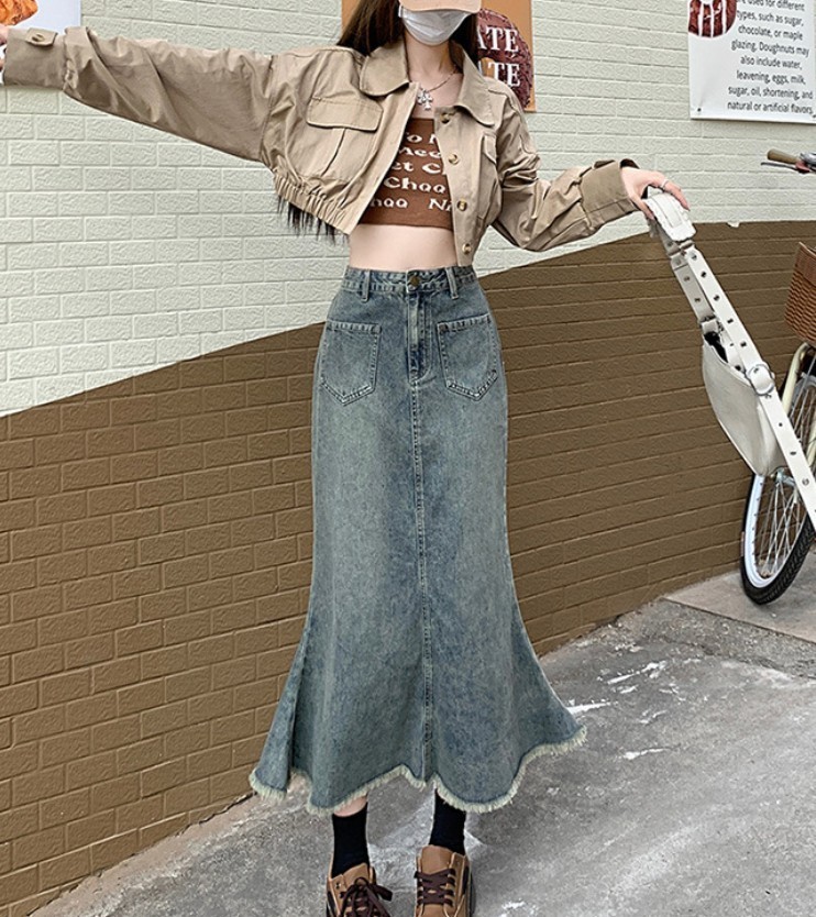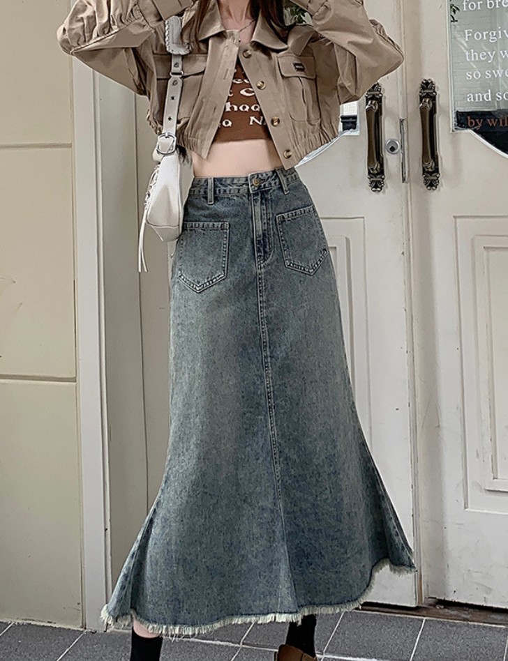 デニムスカートのみの販売となりますので画像にあるトップスや小物等はついておりません。