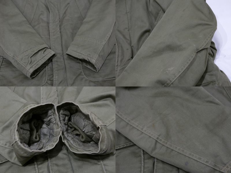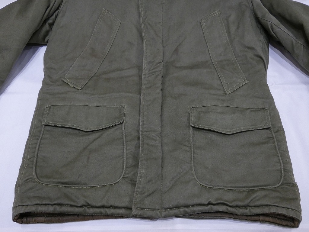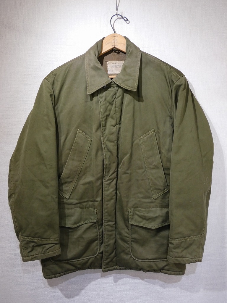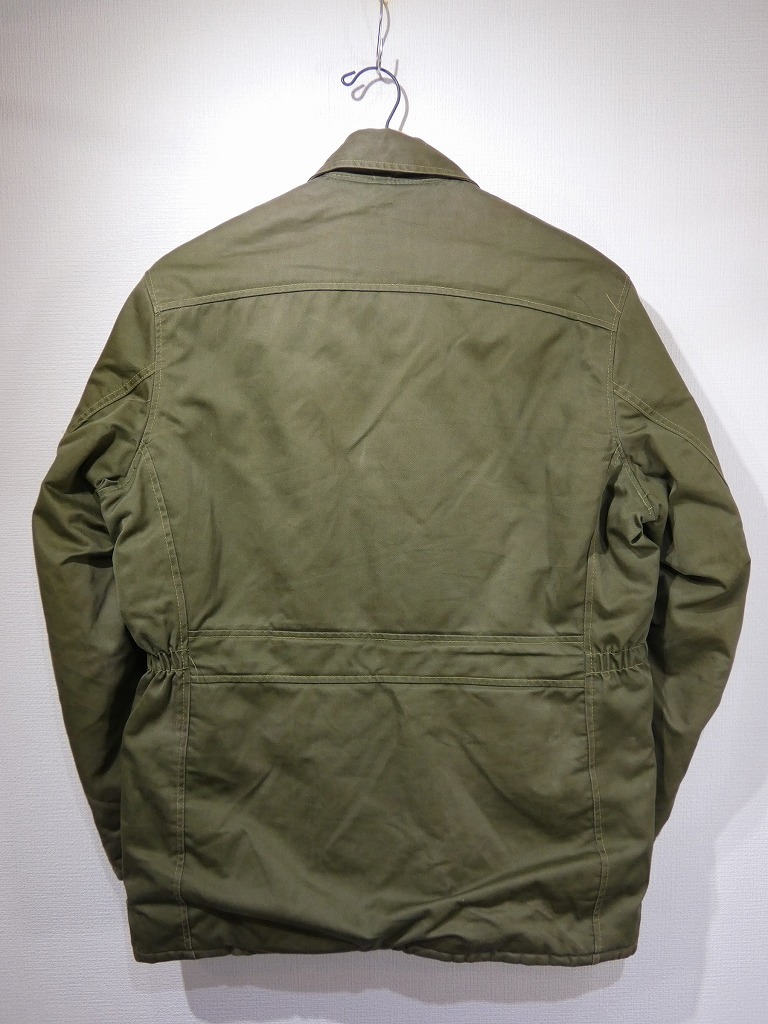 | こちらは、40〜50年代頃のUSエアフォース B-29 フライト ジャケットになります。 USAAFのB-9やB-11の様なデザインで、ジップはクラウンのスプリングジッパーが使用されています。B-29 TYPEと記載はありますが、ミルスペック等は無く恐らくはPXやサープラスショップ等で売られていた民生品かと思われます。以前にこちらと同デザインの物で、左袖にUS AIR FORCEのステンシルの入っている物を見たことがありますので、B-15などと同様に多くのメーカーがシビリアンタイプの物を作り、パイロットがプライベートパーチェスで購入していたのだと思います。この手のミリタリーアイテムはアメリカ本国でも価格が上昇中です。変わった物をお探しだった方は是非、ご検討下さい。 コンディションはやや使用感があり、スナップボタンに少しサビ、腹部や袖などにシミや薄ヨゴレが見られ、ライナーキルティングの裾の方にスレによるダメージやフェードもありますが、着用に問題なく、ビンテージのアジとして楽しんで頂ければと思います。 素材 COTTON×RAYON SIZE 肩幅51cm 身幅64cm 袖丈63cm 着丈79cm 素人採寸の為、多少の誤差はご了承ください。 | |||