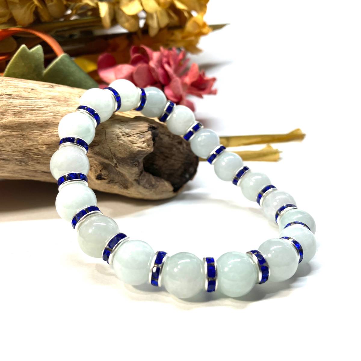 ビルマ翡翠 パワーストーン ブレスレット 10mm 天然石ブレス (D.ブルー) 数珠ブレス メンズ・レディース 男性 女性 幸運 開運 浄化