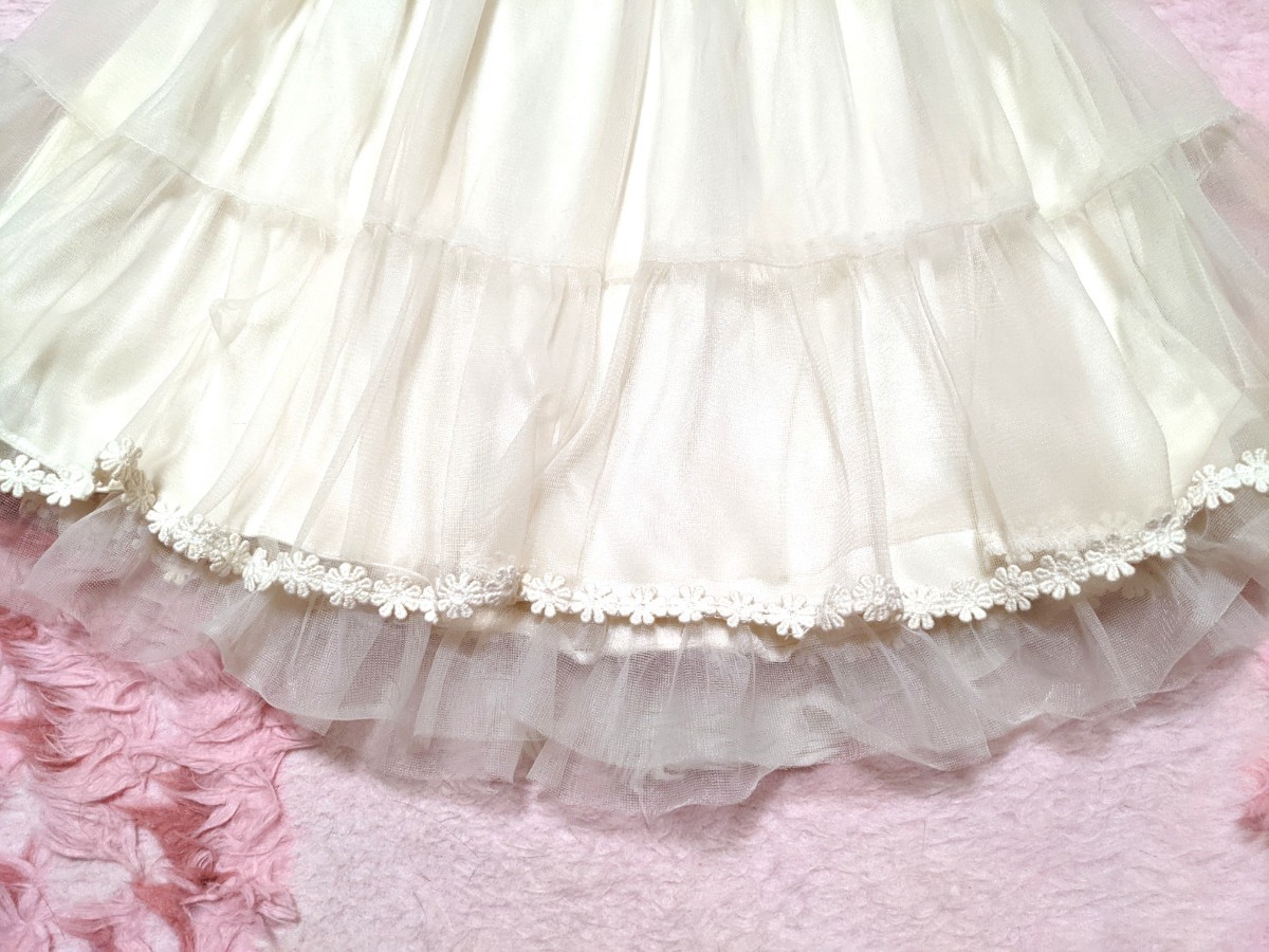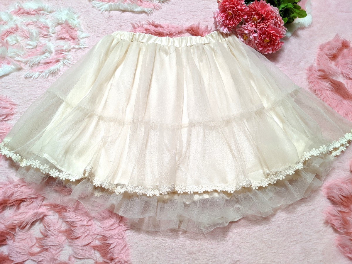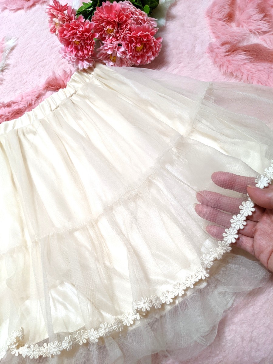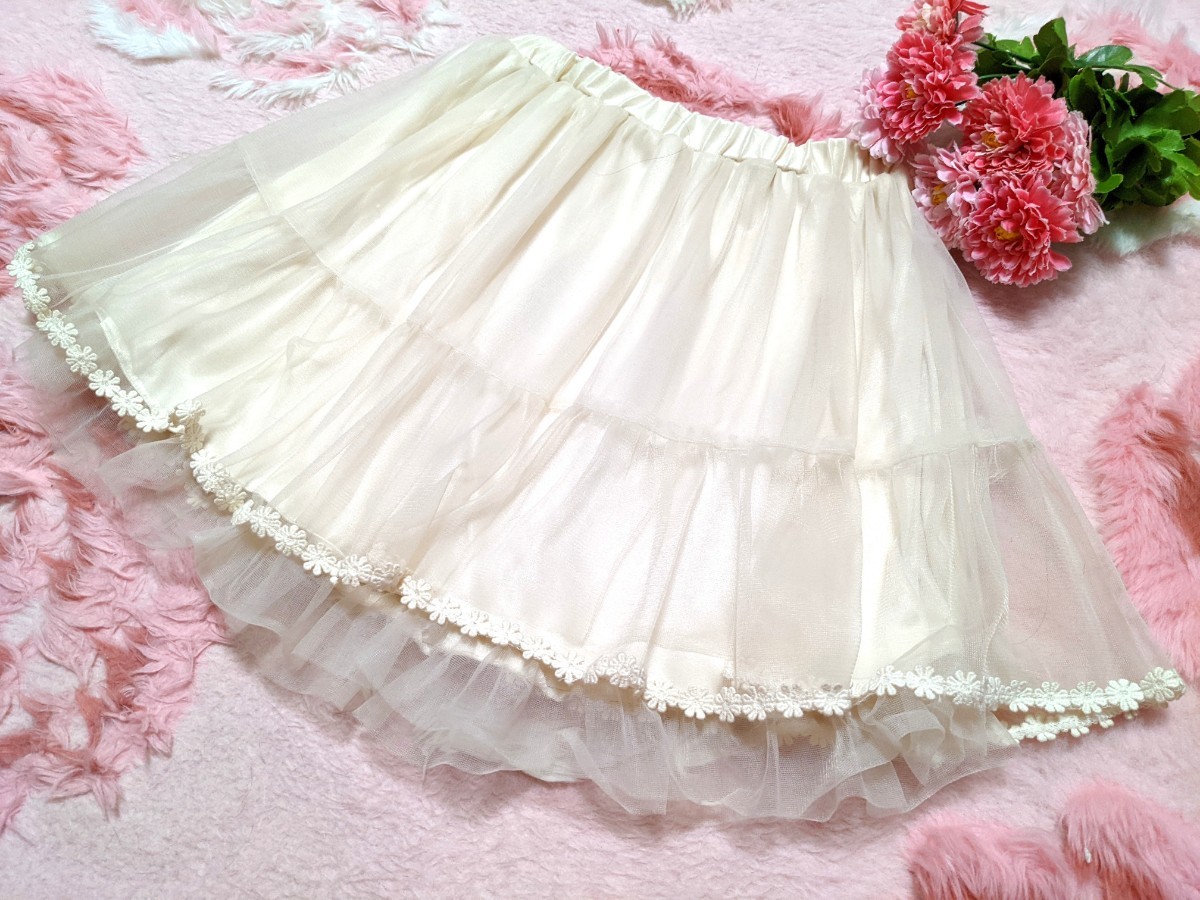 赤ちゃんの肌の様なふんわり柔らかチュールが2枚重ねで裾には花びらが沢山縫い付けられた素敵なスカート!