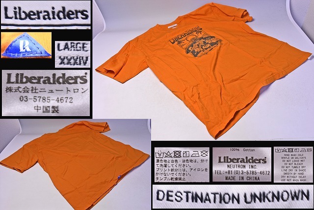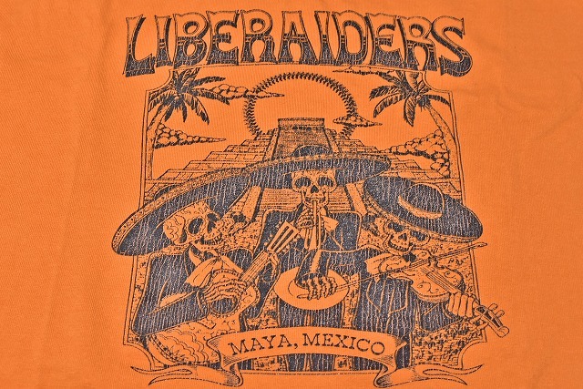 LIBERAIDERS ★ Tシャツ ★ Lサイズ ★ オレンジ ★ DESTINATION UNKNOWN ★ 綿100% ★ 古着風印刷 ★ MAYA MEXICO ★ 中古品 ★