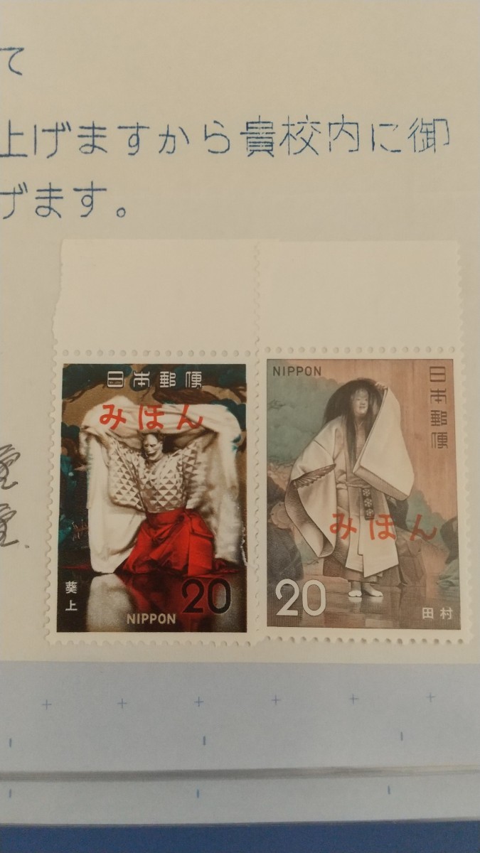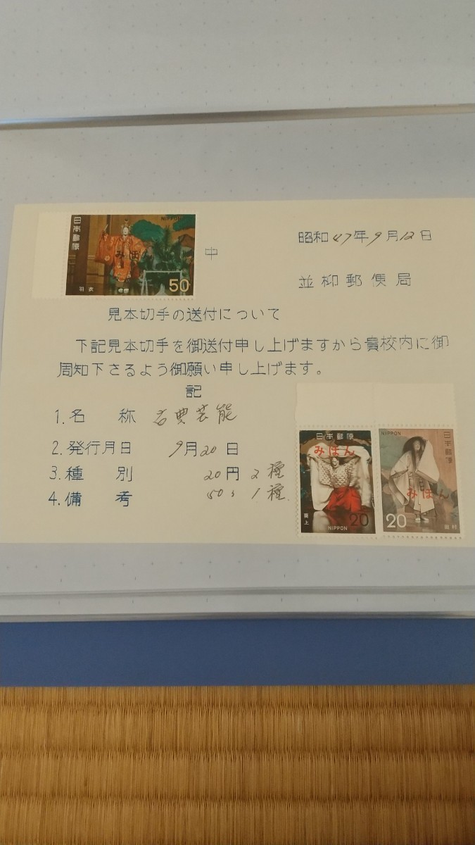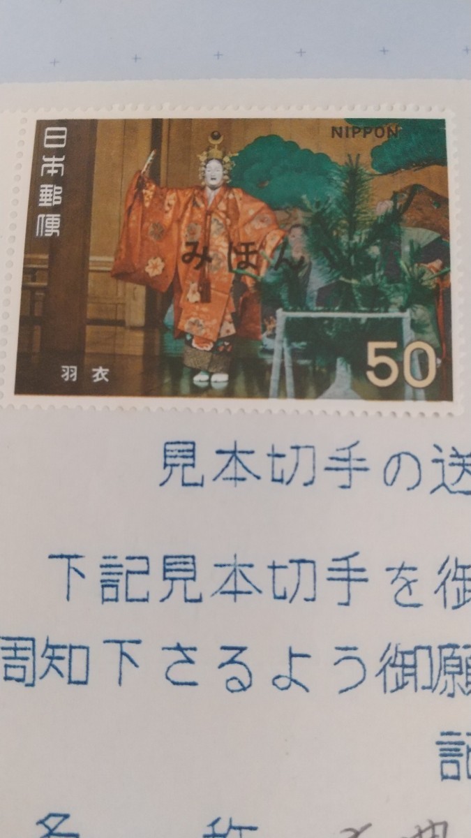 古典芸能、葵上、田村、羽衣、みほん切手、台紙に折り目あります。よろしくお願いします。