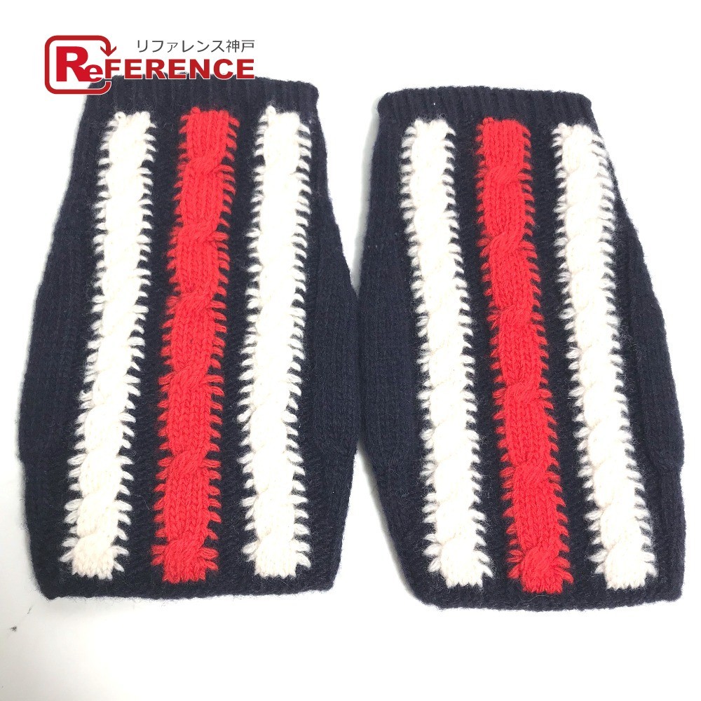 未使用 GUCCI グッチ 521149 ストライプ グローブ 指無し 手袋 ネイビー レディース【中古】