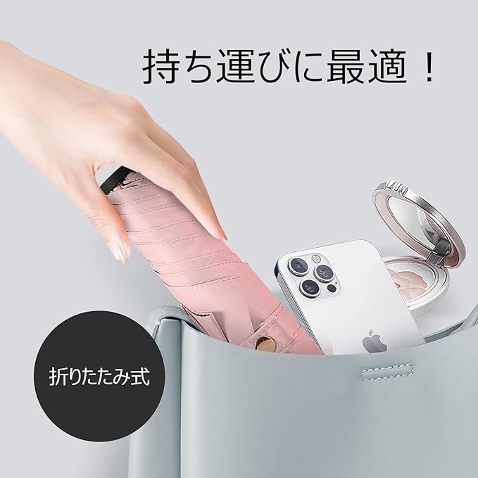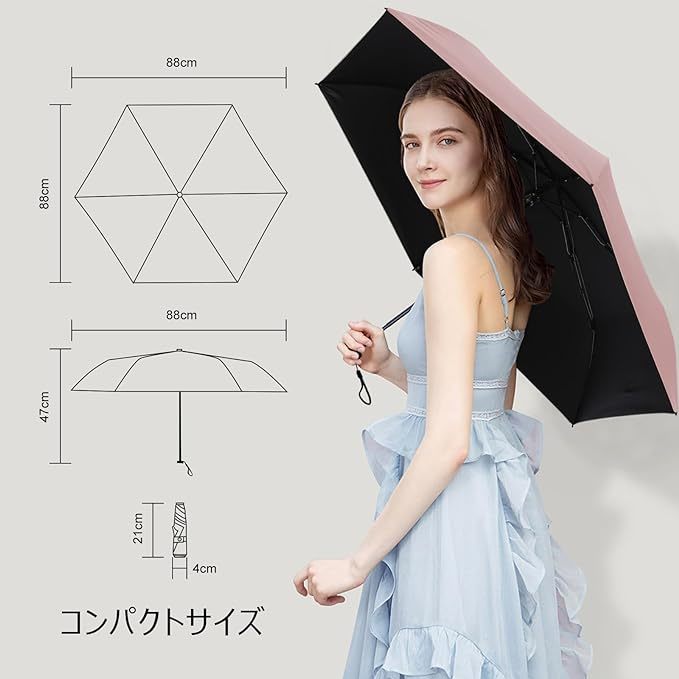 Numkey 日傘 晴雨兼用 レディース 折りたたみ傘 軽量コンパクト 165g UPF50+ 遮光 紫外線対策 21cm収納 耐風撥水 収納ポーチ付き ピンク