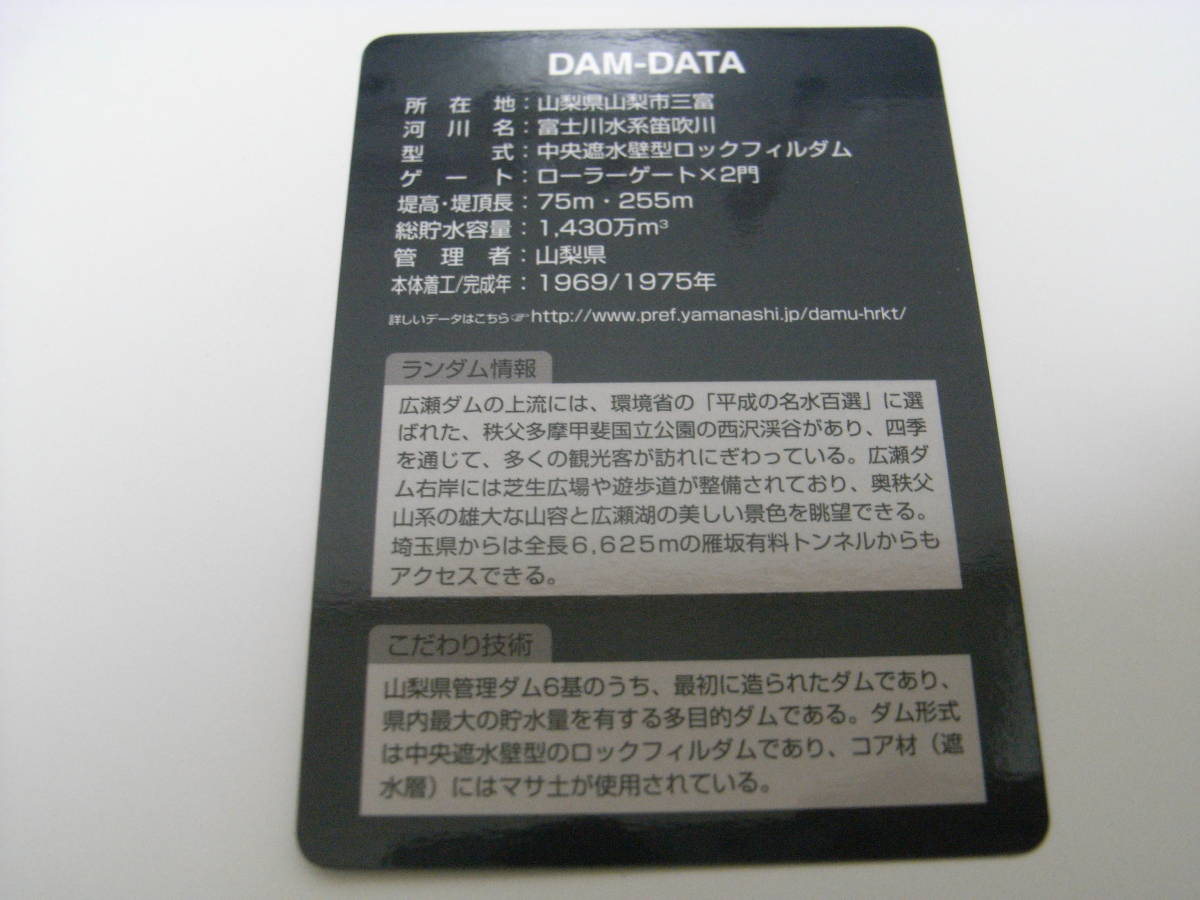 ダムカード 広瀬ダム 山梨県山梨市三富