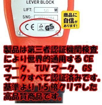 送料無料レバーホイスト1.0ton 1.5m レバーブロック(Lever Hoist)チェーンホイスト チェンブロック チェーン ガッチャ 荷締機 高品質