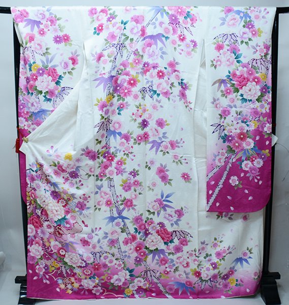 | 品質 | ・新品 ・正絹 ・仕立て上がり(すぐ着用できます。) ★品質高い高級正絹生地に色鮮やかな柄で彩られたワンランク上の振袖です ★正絹とは? 本絹ともいう、まじりけのない絹糸、またはその絹糸で織った織物。 ※当店では、現物と写真画像の色、イメージに相違がないよう撮影に工夫を凝らしておりますが、より詳しいお色説明をご希望のお客様は、「サイト設置の質問」 「メール(aji_net@khaki.plala.or.jp)」「お電話」「FAX」にて、御質問ください。 |