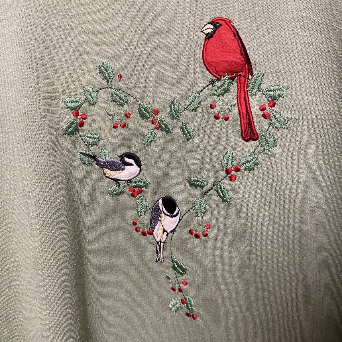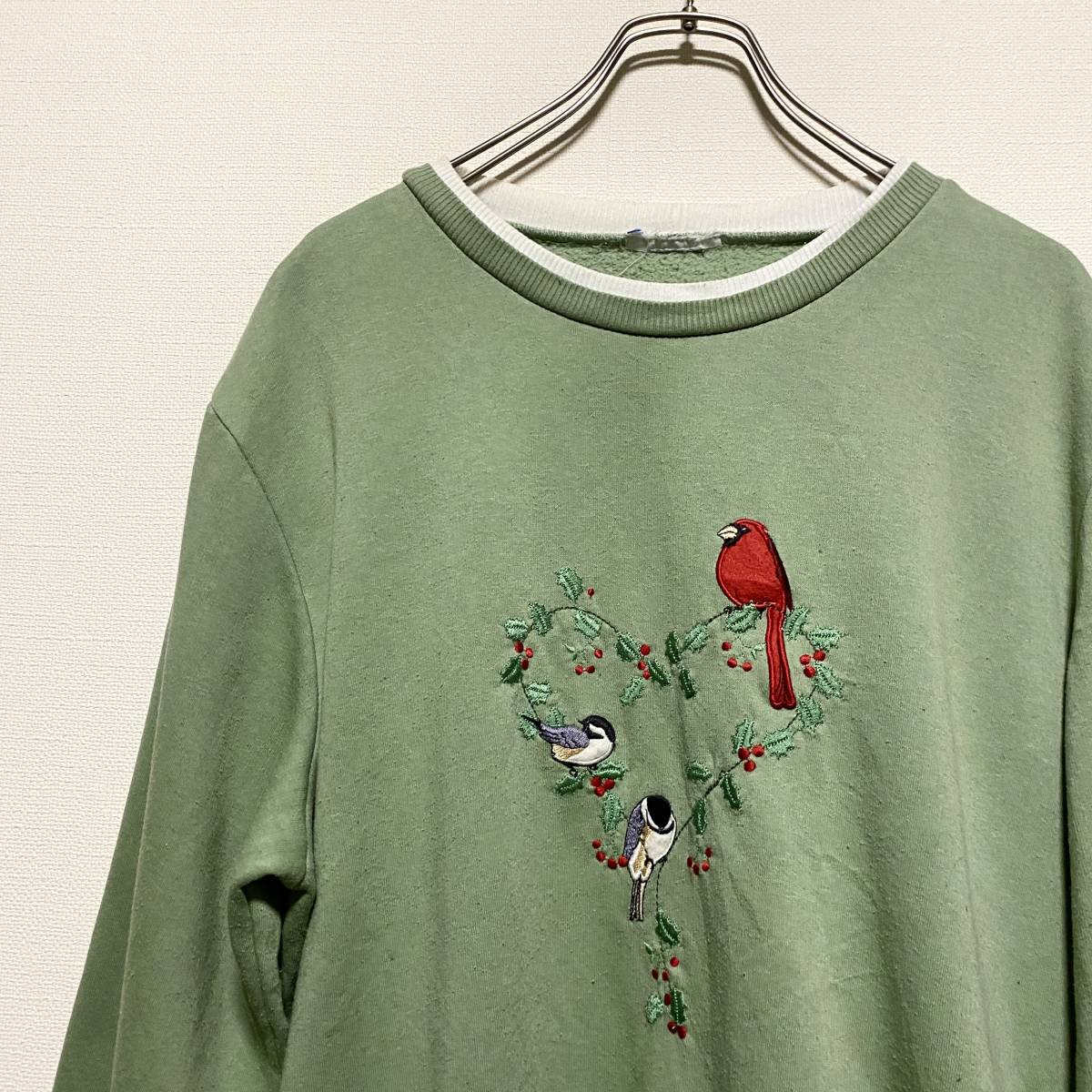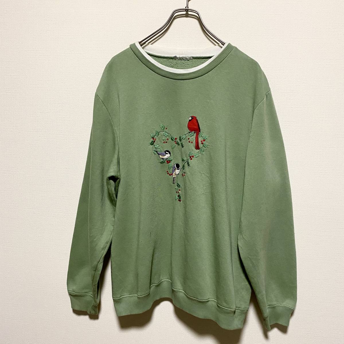 アメリカ古着 90s ヴィンテージ 鳥 刺繍 アニマル トレーナー スウェット 裏起毛 レトロデザイン クルーネック 【R10】