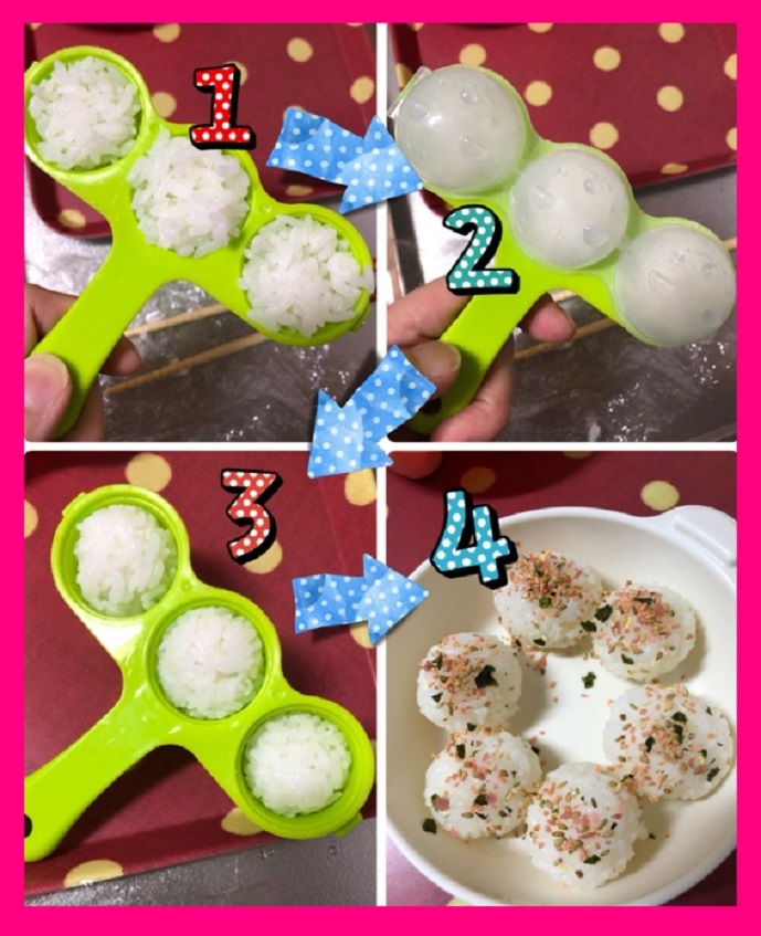 ・写真のような「プチおにぎりの押し型:3個用(ボール型)」x2です。♪