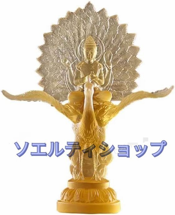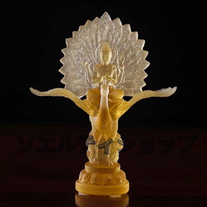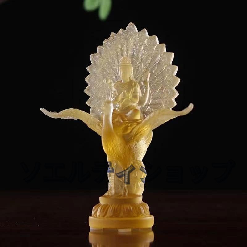 新入荷☆孔雀明王 仏像 孔雀仏母 孔雀王母菩薩 置物 瑠璃材質守り本尊 除災 祈る 厄除け高さ13.5CM