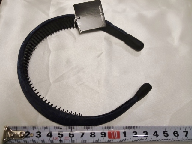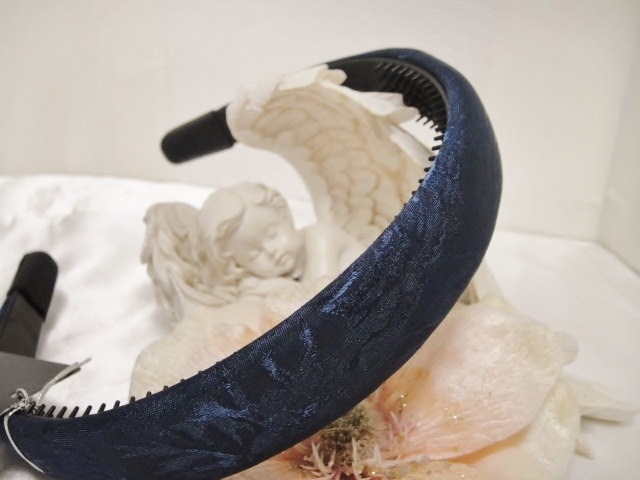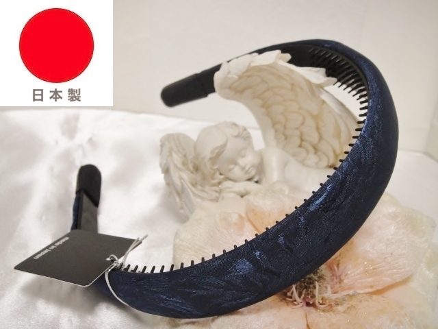 ♪ 新品 カチューシャ 日本製『高品質/幅広/甲丸/シルクシャンタン/ローズプリント柄/薔薇/花/頭が痛くならない/パールネイビー/紺』♪