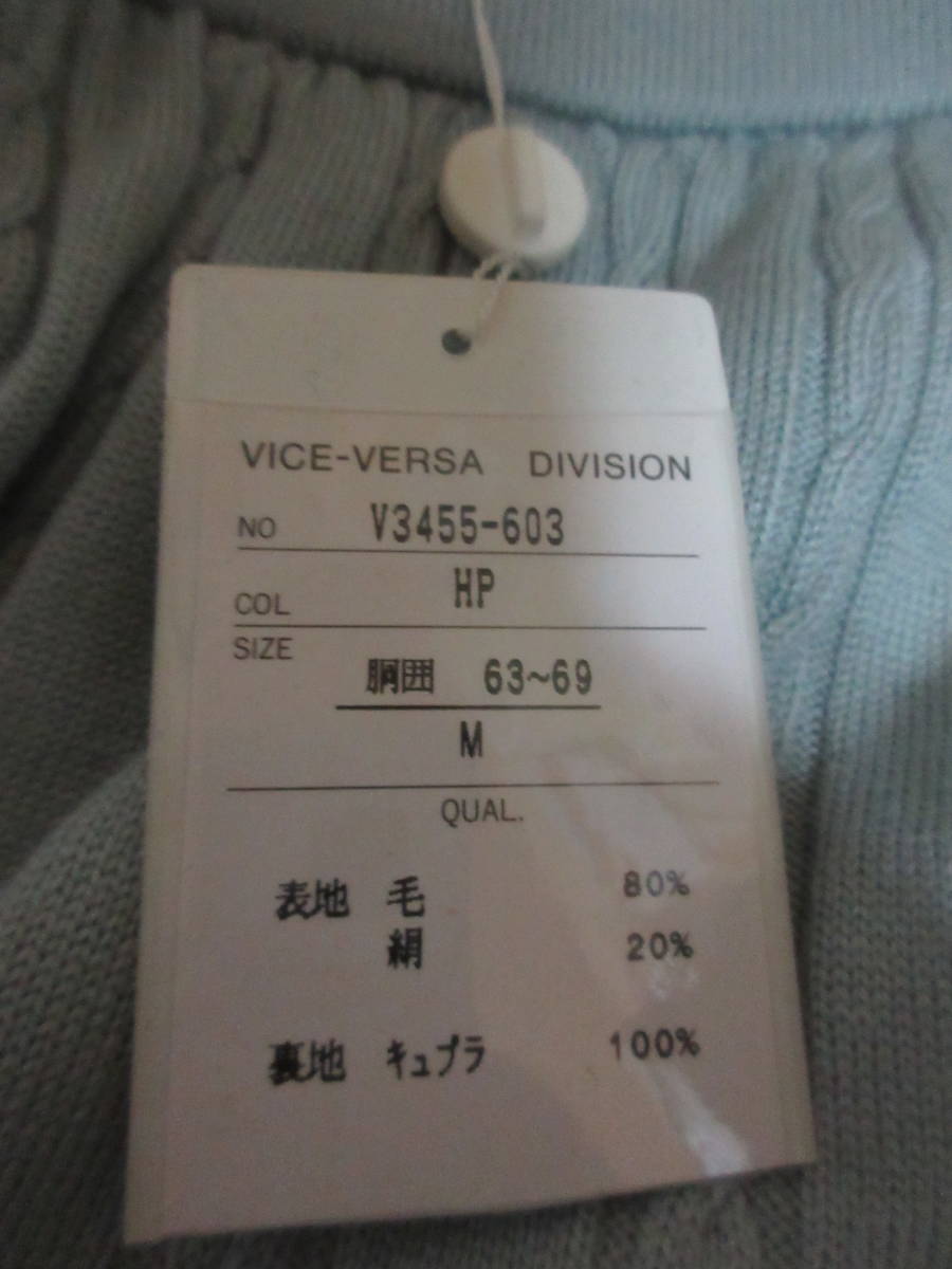 表示サイズM、実寸ウエスト60~74㎝、丈58㎝。毛80%、シルク20%。ゆうパケット¥230でお送り予定です。もちろん同梱大歓迎。