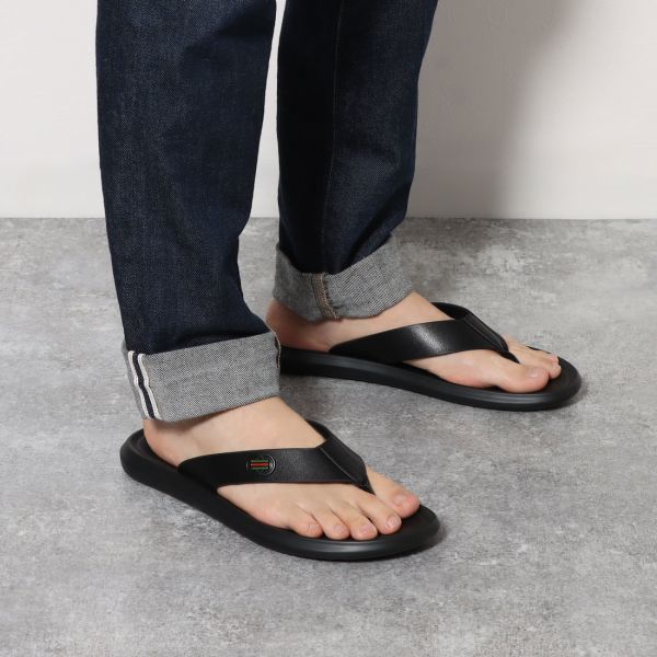 足馴染みが良く、お手入れも簡単な人工皮革、マイクロファイバーレザーを用いたサンダル。