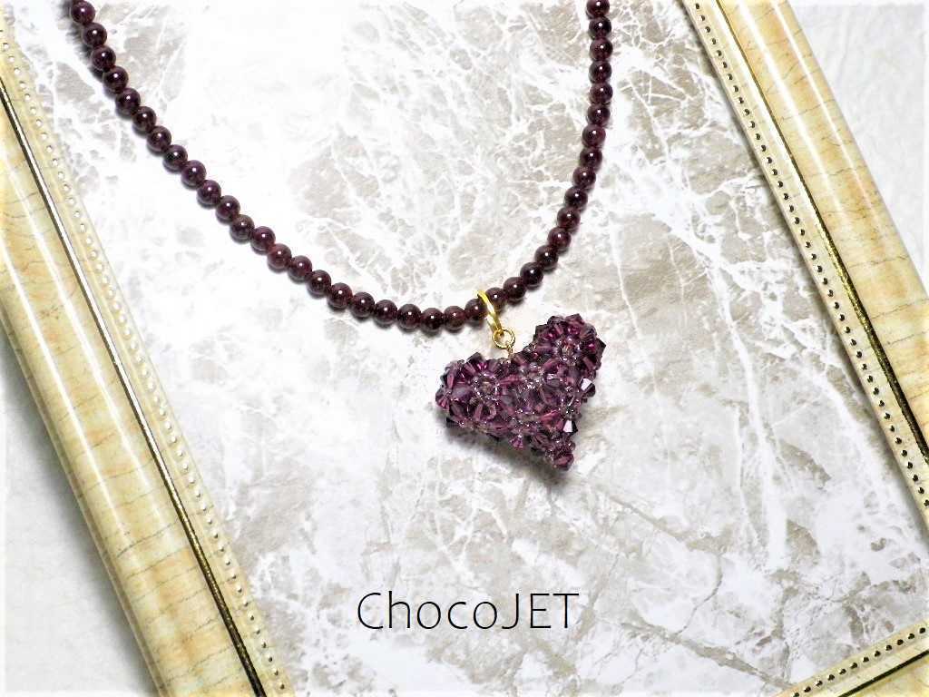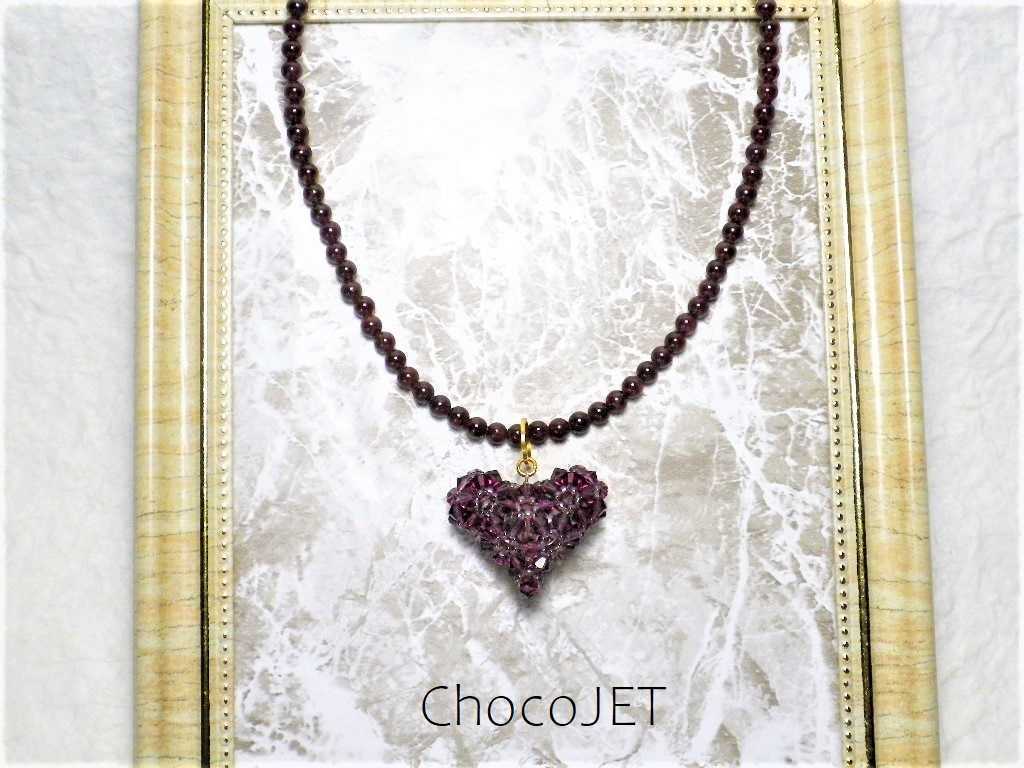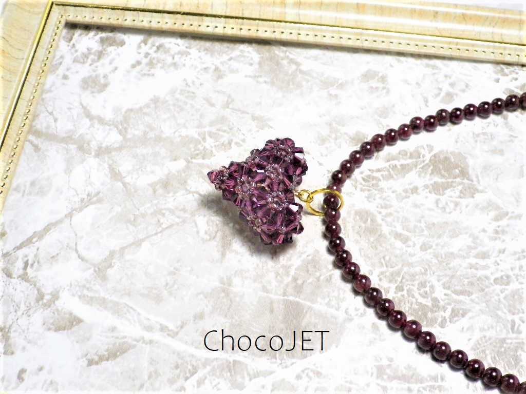 スワロフスキー、シードビーズ、アクリル玉、天然石ガーネット、