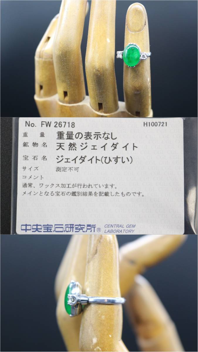 翡翠 / ジェイダイト / リング / 8号 / プラチナ / ダイヤモンド / アクセサリー / 指輪 / ヒスイ / 中央宝石研究所鑑別済み