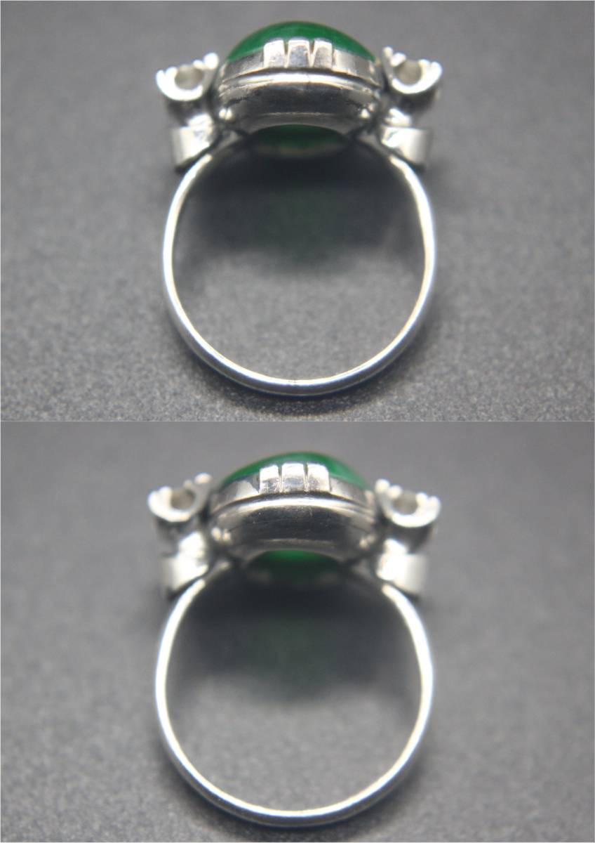 美しい翠緑が指先によく映え、サイドのダイヤモンドが美しく輝く上品なデザインになります。