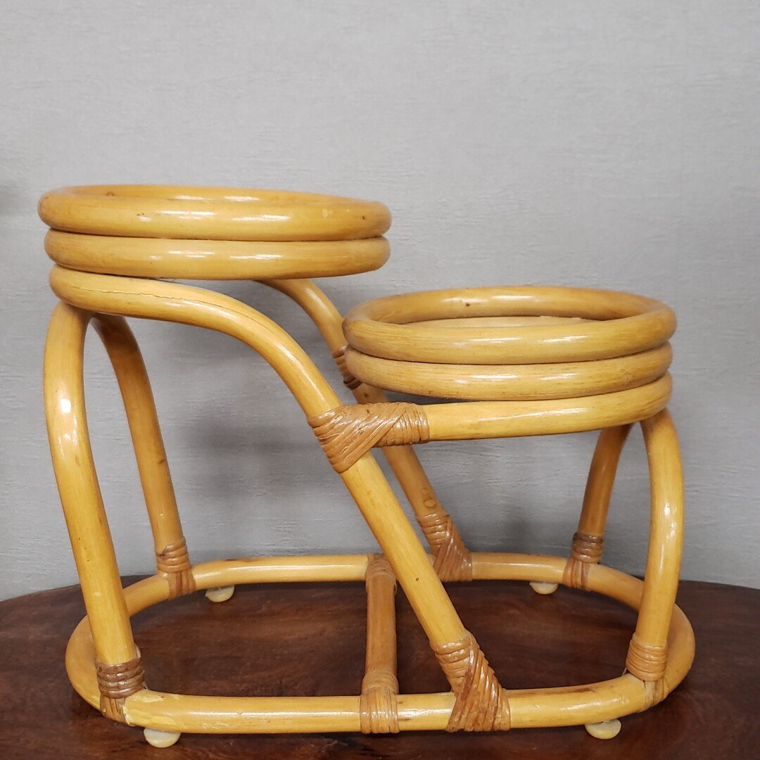 ラタン製のフラワープランタースタンドです。段違いで飾ることができます。