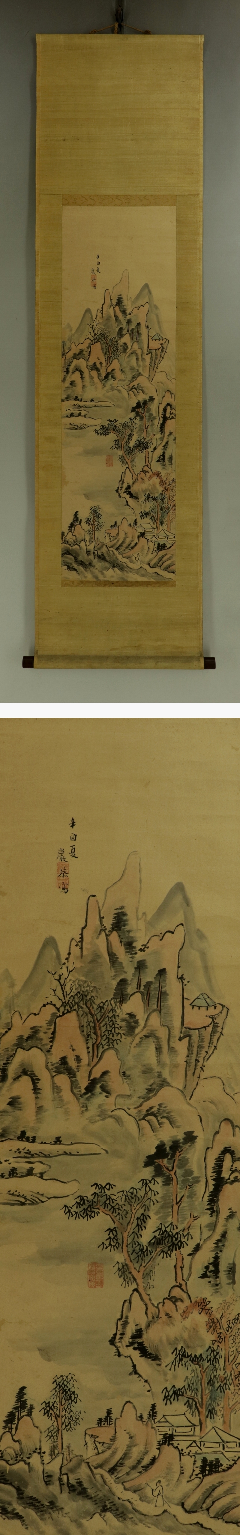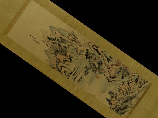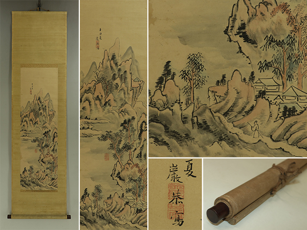 | №2111035 名品【真作】青木木米【淡彩山水】◆紙本◆合箱◆掛軸 | |