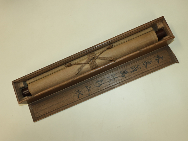 青木木米 あおき-もくべい(1767-1833) 江戸後期の陶工・南画家。京都の人。 後年、聾米と号す。煎茶器にすぐれ、交趾・染め付けなどを得意とした。 本紙は、染み、汚れ、強い折れ、皺、破れ痕、ヤケ、生地剥れがあります。 表装は、染み、汚れ、折れ、皺、擦れ、ほつれ、虫食い、破れ、修理痕、 くすみ、箱に破損があります。 【サイズ】 作品 横約28cm×縦約92cm 表装 横約41cm×縦約155cm |