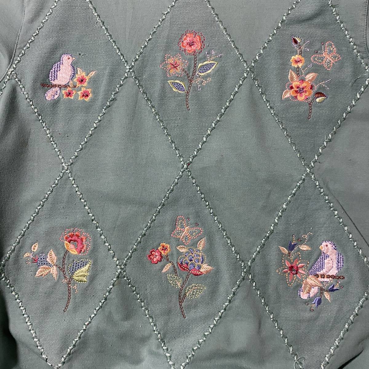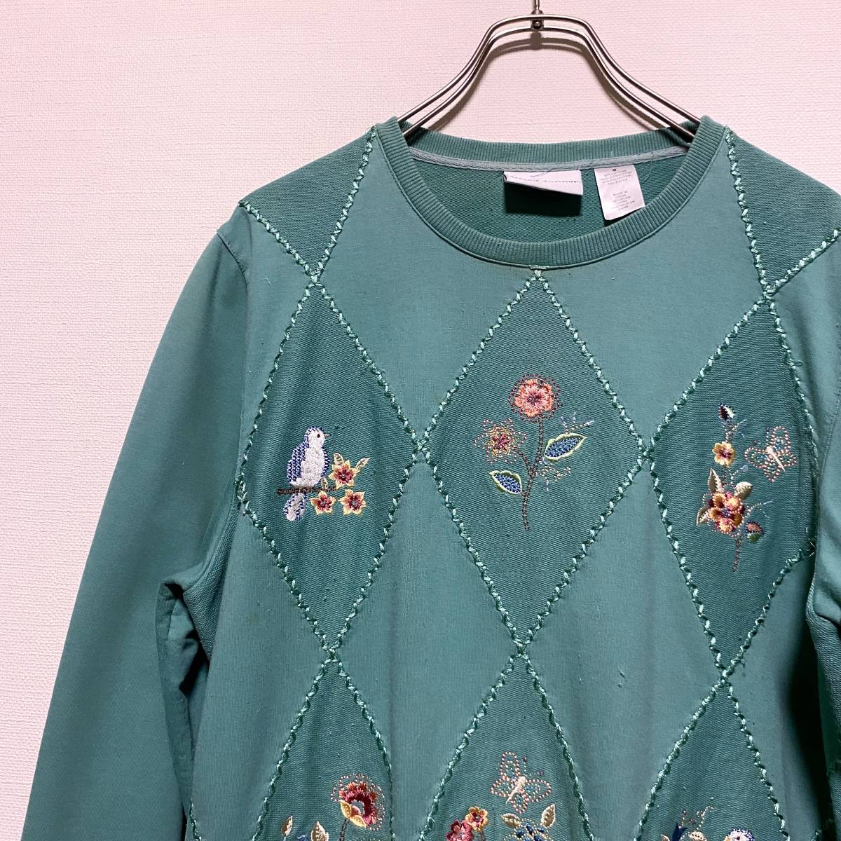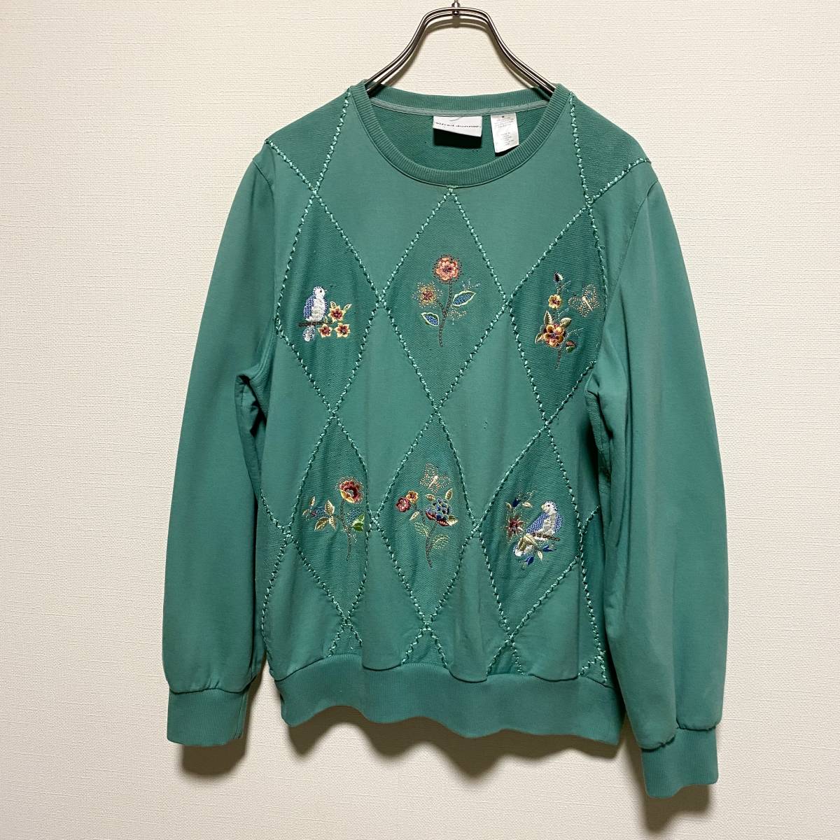 アメリカ古着 花 刺繍 トレーナー スウェット ヴィンテージ ださかわ Mサイズ クルーネック 【R20】