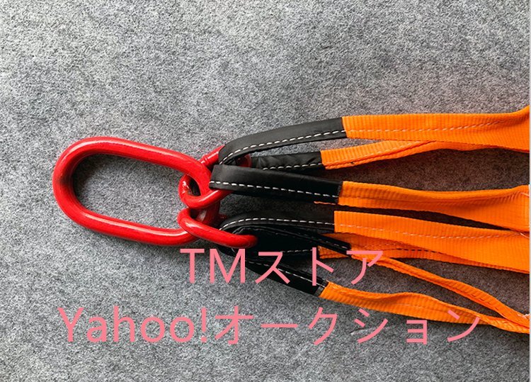 高品質★玉掛け用金具付き ベルトスリング 4点吊りスリングベルト 炭素鋼製 フック付き リング付き ポリエステル製 ベルト長さ1m 耐荷重4t
