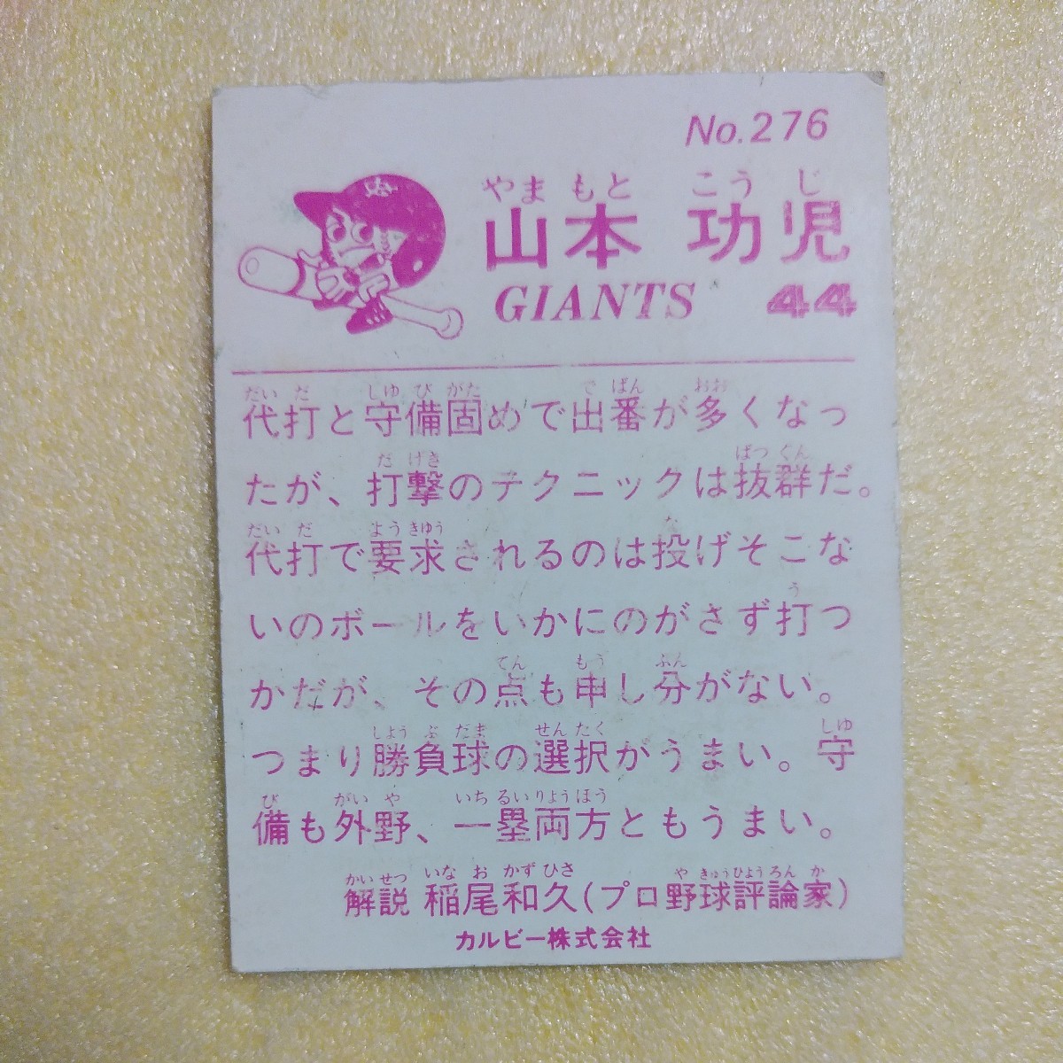 1983カルビー野球カード№276山本功児(巨人)