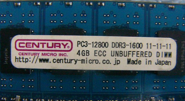 240pin DDR3 1600 PC3-12800 4GB ECC Centuryです