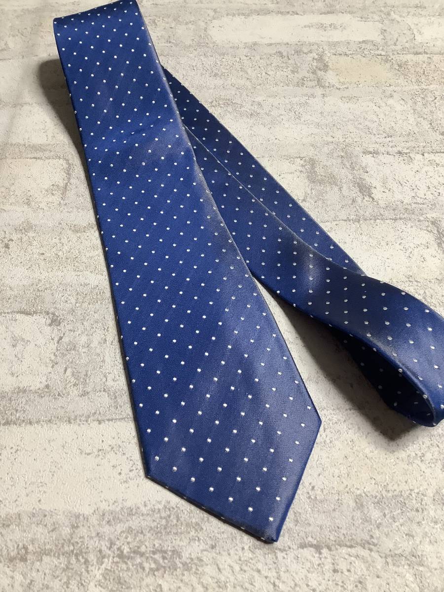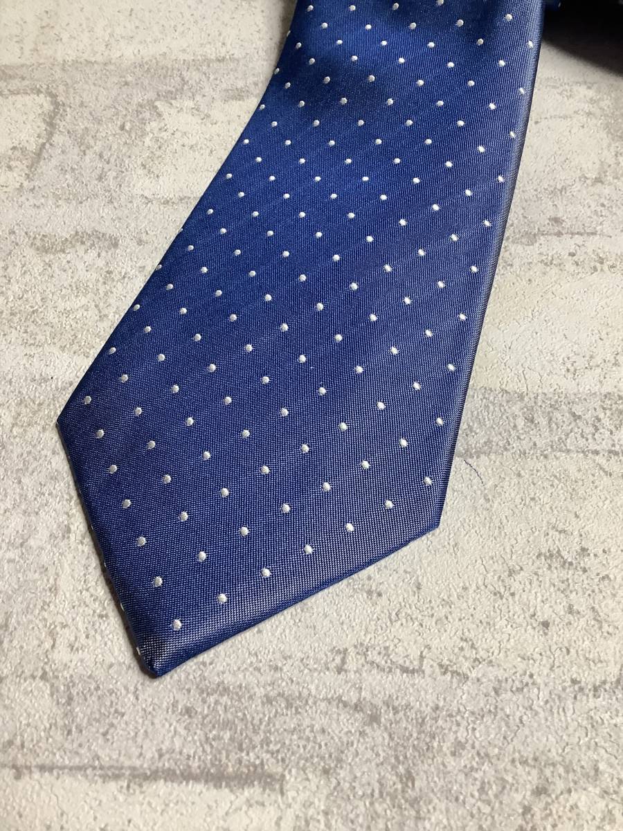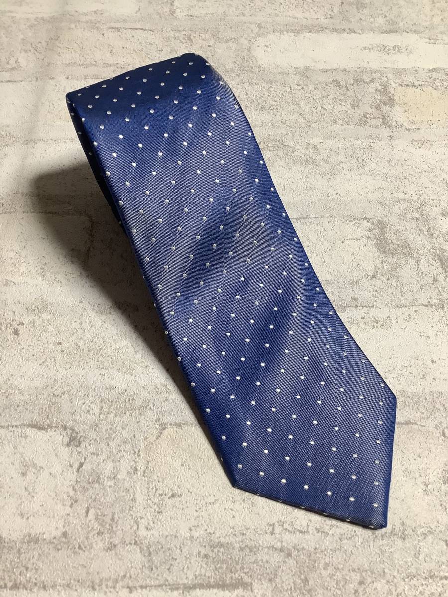 新品未使用★おしゃれなドット柄  シルク100%  明るいサックス水色 水玉柄 参考上代3,900〜4,900円