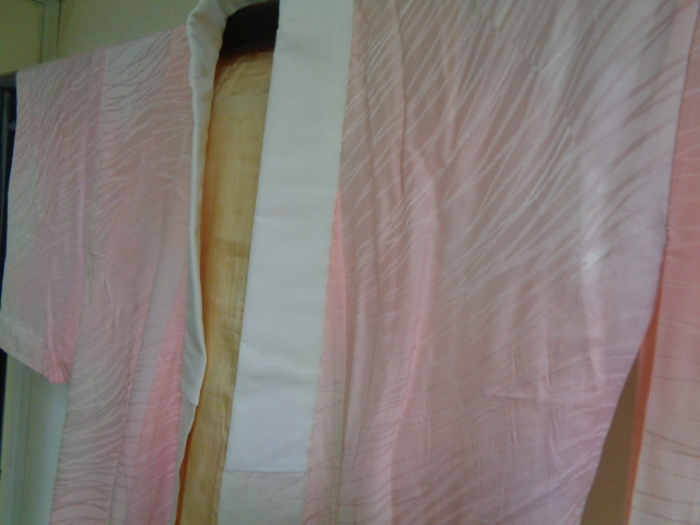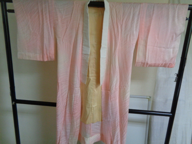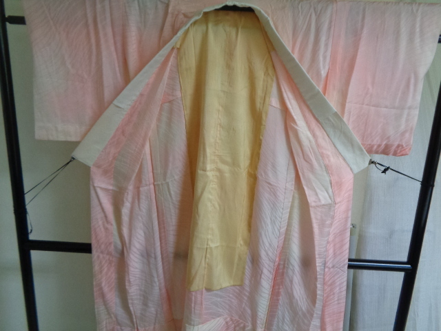 B704-80 長襦袢 正絹 半衿付き ぼかし染め 芝草織文 着丈121センチ 裄62センチ