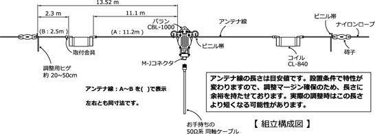 ●全長:27.2m ※耐入力500W(PEP)、300W(CW)、逆Vでも使用可能。 全長は調製前の寸法で、実際には多少短くなります。