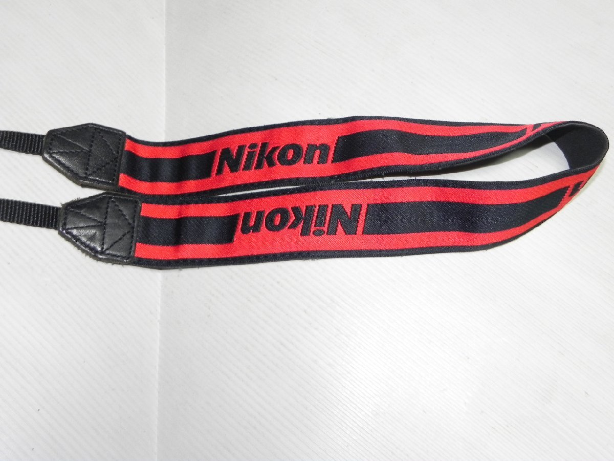 Nikon ストラップ (1a)。幅約37mm、取り付け幅約11mmです。品物に使用感、少ほつれがあり、中古品です。