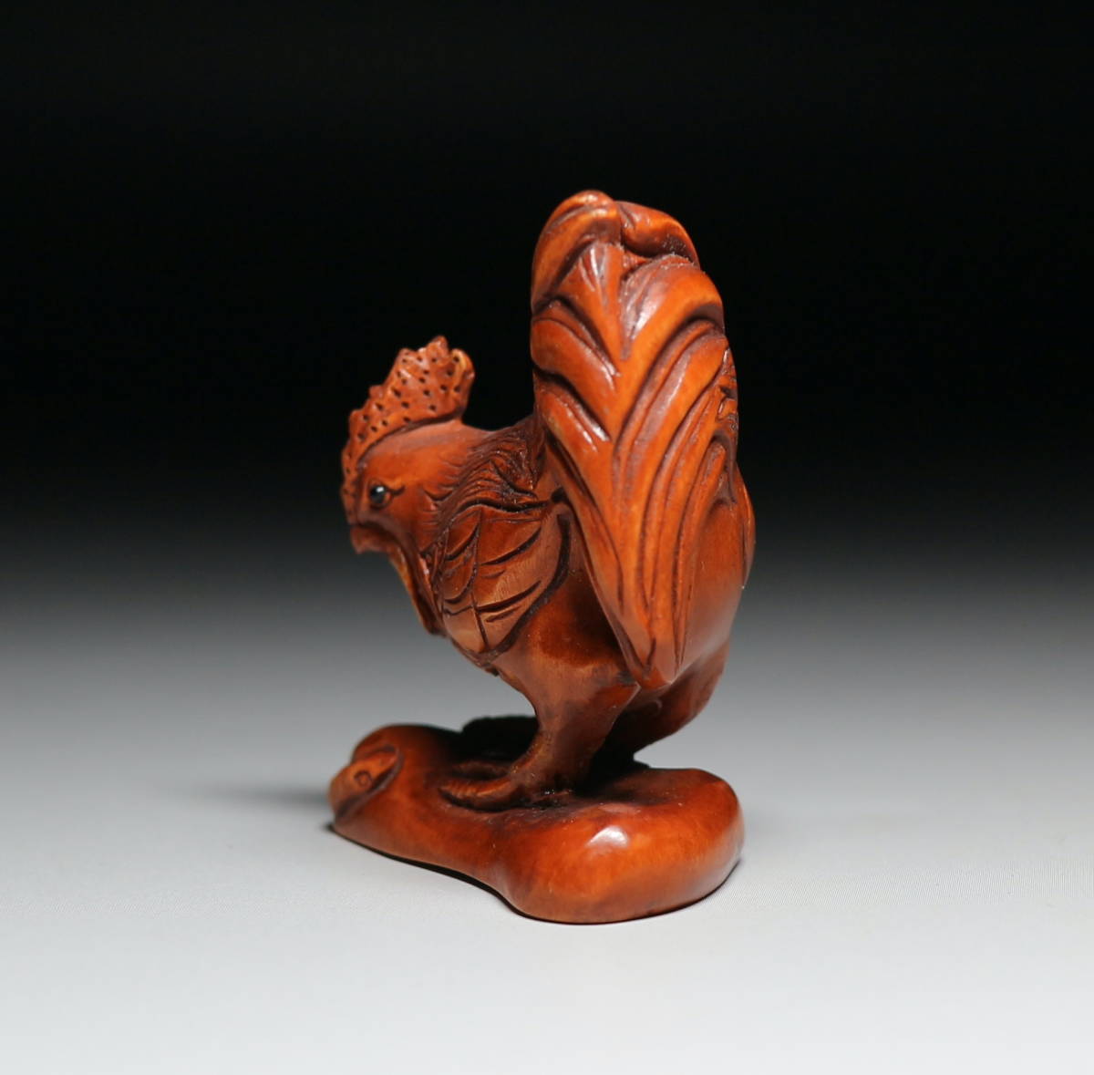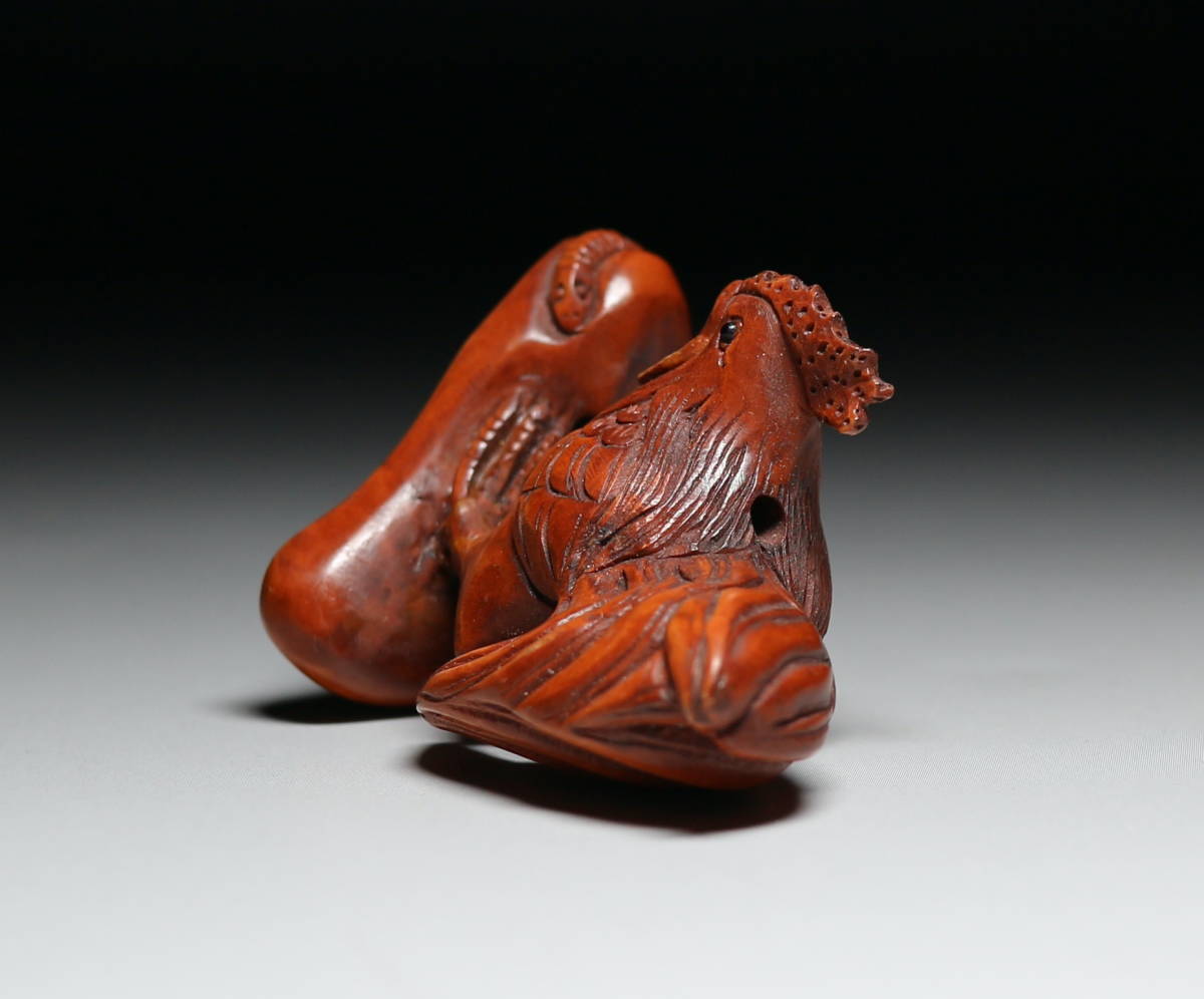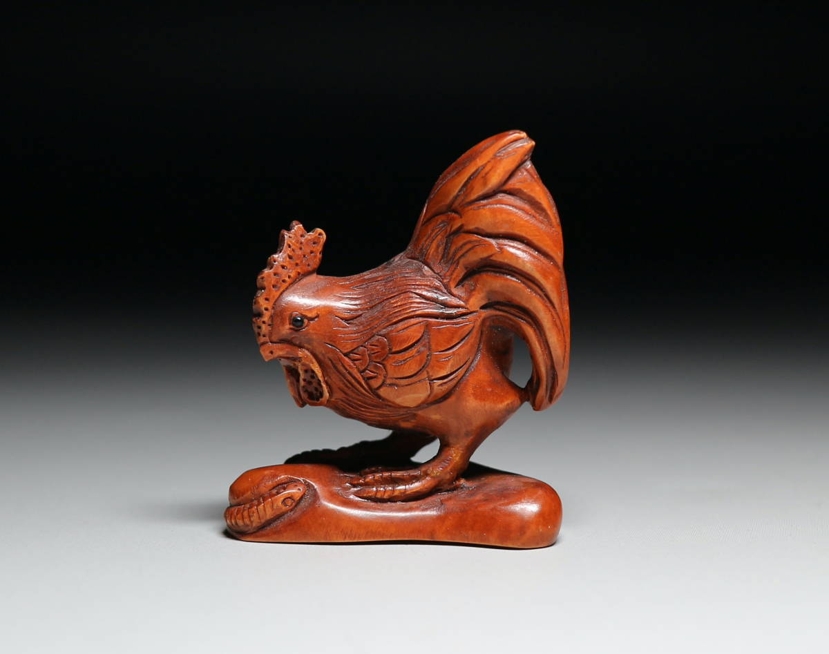 ★吉丸★ 柘植根付D186【雄鶏】  黄楊木彫