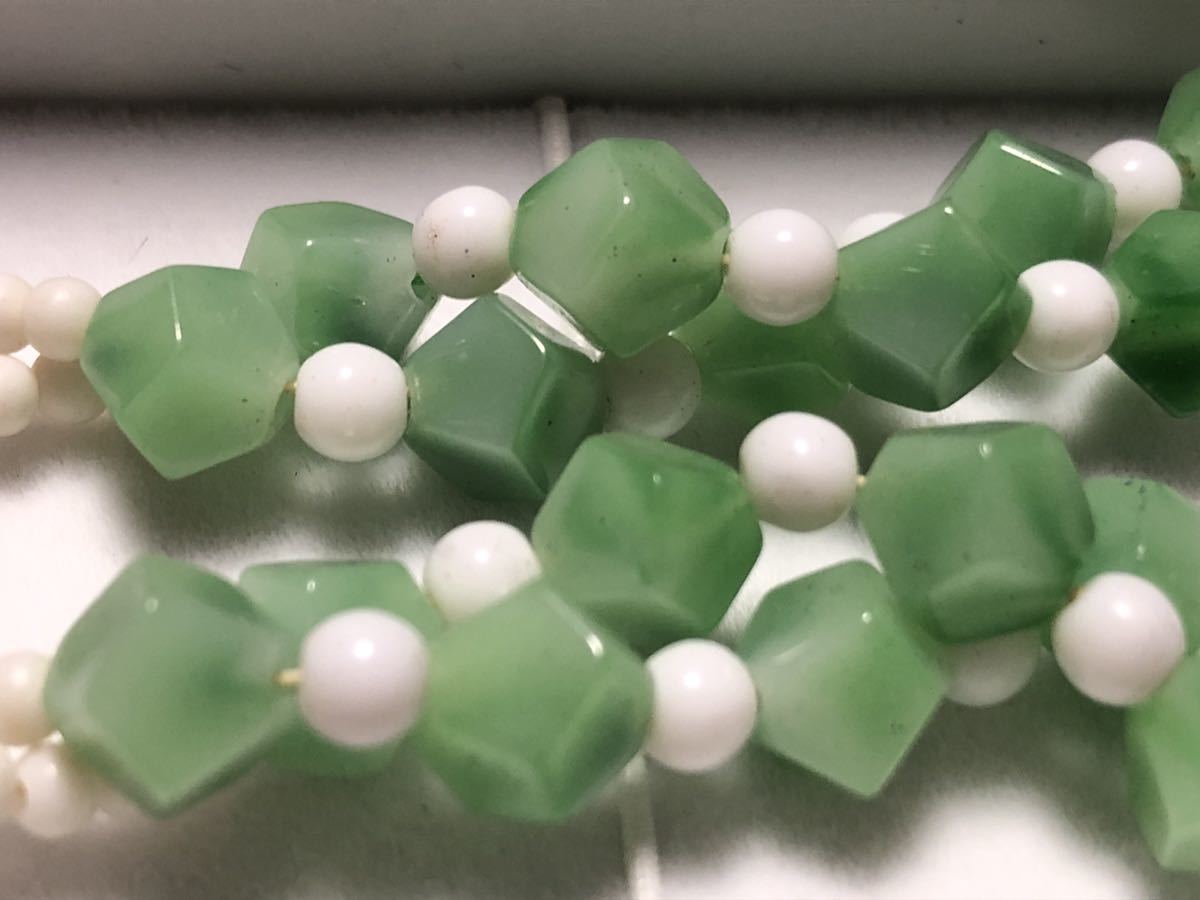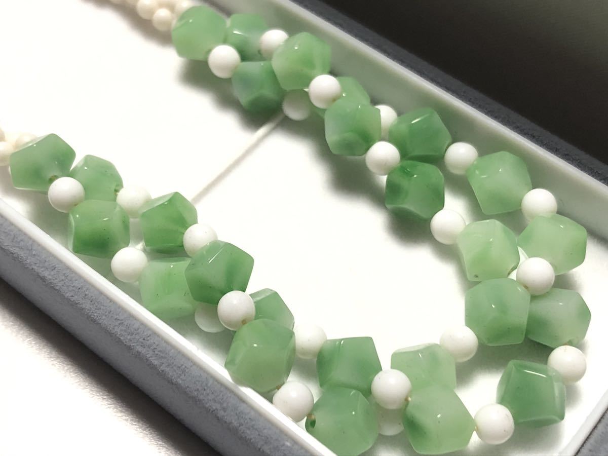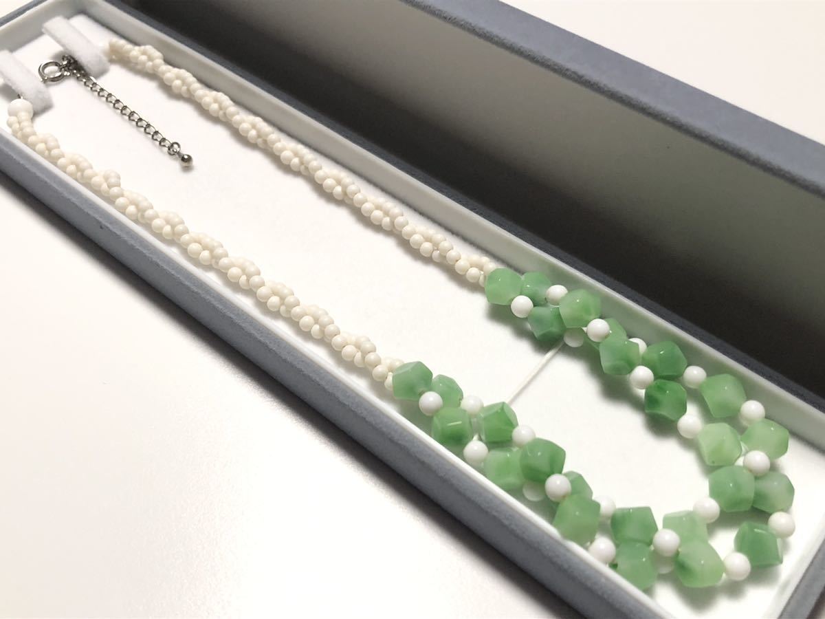翡翠風(樹脂)に仕上げたデザインネックレスです。長さ調節可能です。