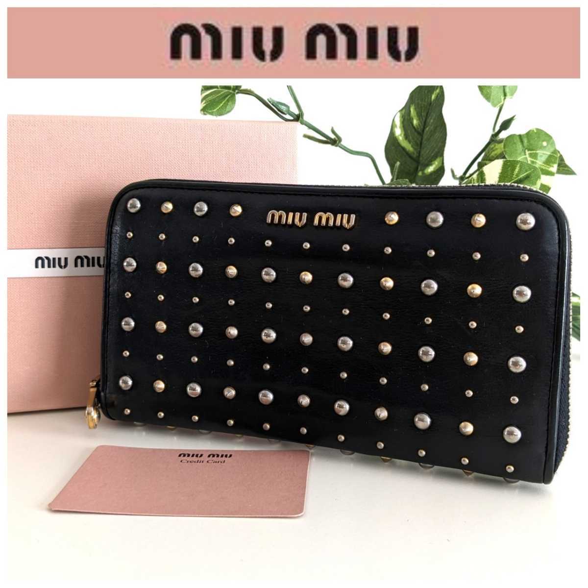 【商品】MIU MIU ミュウミュウ レザー 本革 スタッズ 長財布 大容量 ラウンドファスナー ジッピーウォレット ヴィンテージ レトロ アンティーク