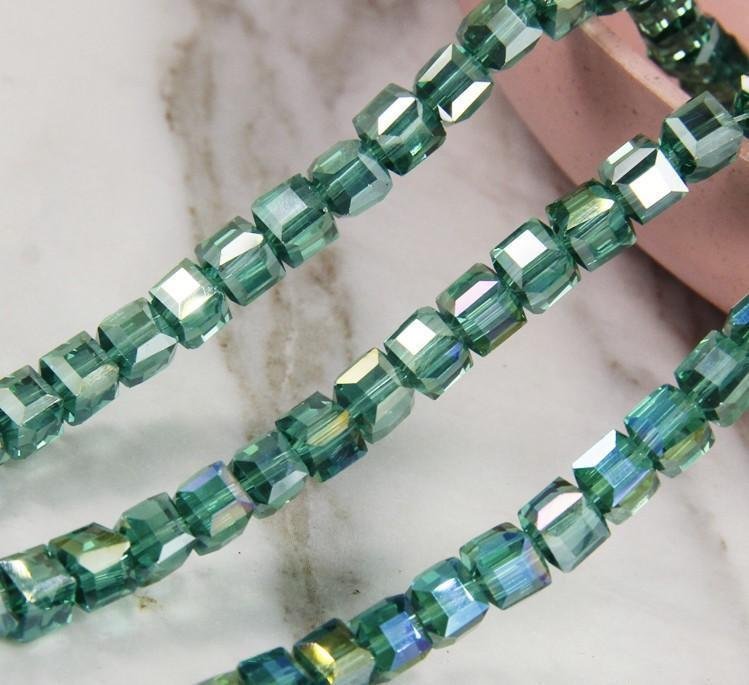 8mm 四角型 スクエア ビーズ ハンドメイド クリスタル ガラス エメラルドグリーン