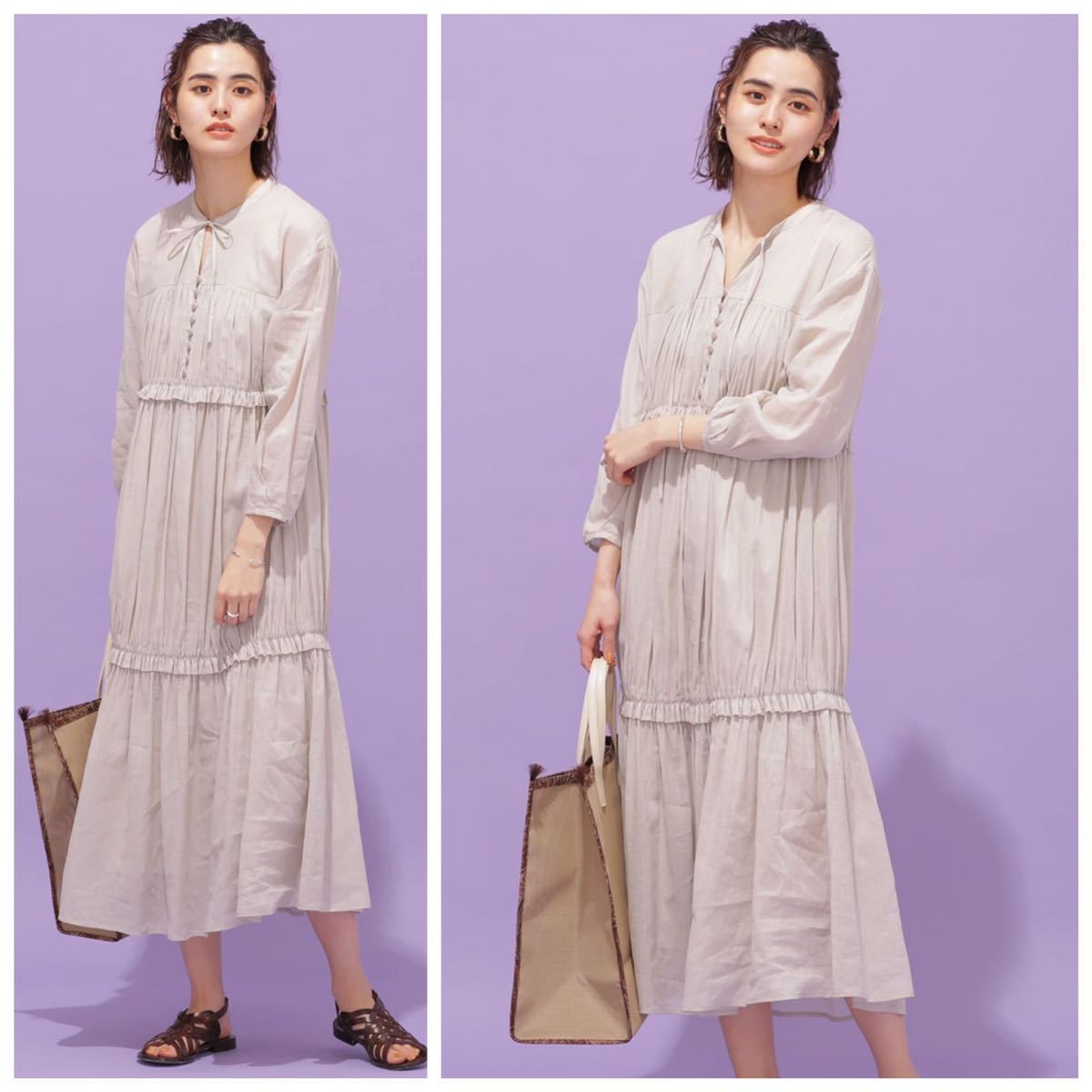 ・春夏らしく涼やかな麻混素材で仕立てたワンピース