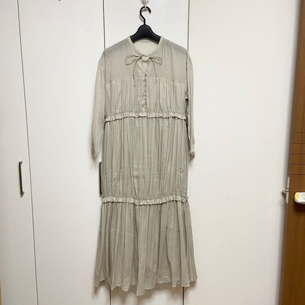 ナノユニバースのラミーギャザーティアードワンピース 8分袖です。