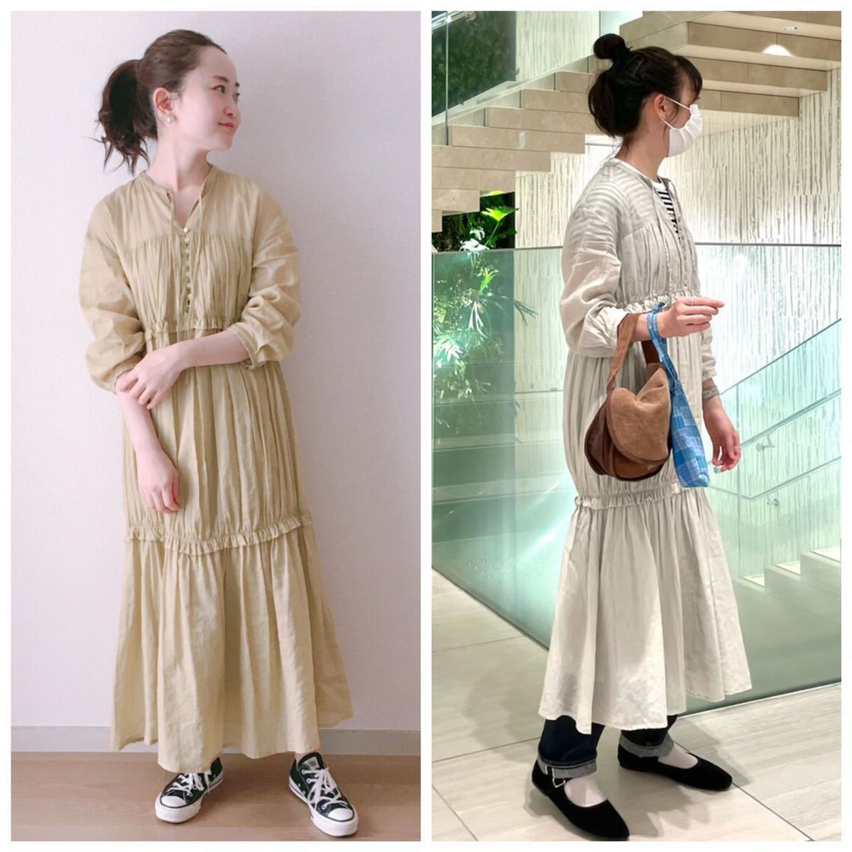 春夏らしく涼やかな麻混素材で仕立てたワンピース。