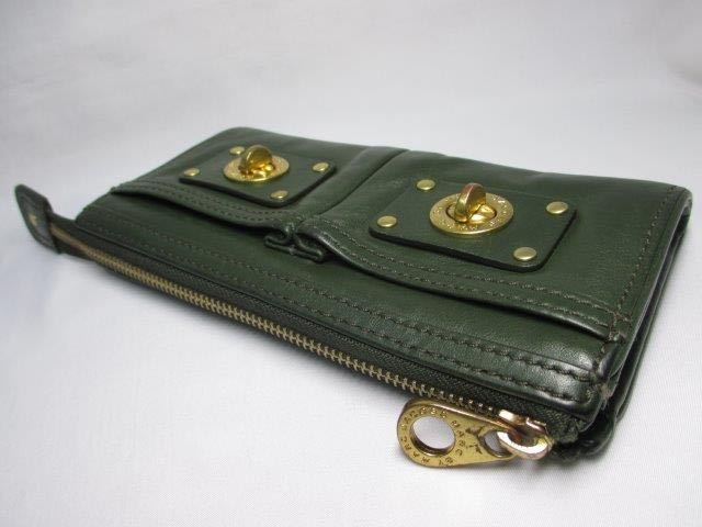 【本物】MARC BY MARC JACOBS マークバイマークジェイコブス  ファスナー長財布 カーキ 中古本物
