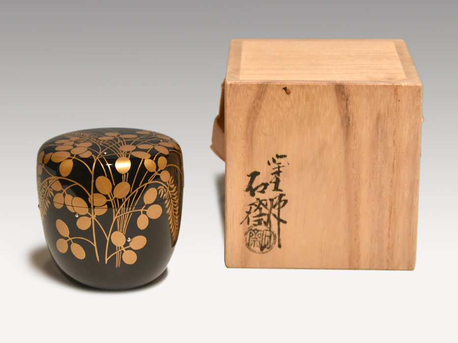 辻石斎(造)秋草蒔絵棗 銀粒入 共箱 共布 茶道具 現代工芸 漆工芸 漆芸 美品 天然木 木工芸 |