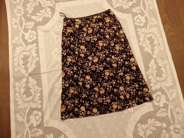 ・ブランド名:アリスバーリー ・サイズ:9 ・素材:表地~綿100% テープ~ポリエステル100% 裏地~ポリエステル ・平置実寸:W32 総丈64 <素人採寸ですので多少の誤差はお許しください> ・USED-新品同様。1回の着用です ・めだった汚れシミは無い様に思います ・ベルベットかベロアか生地に詳しくないのでわかりません ・6枚はぎブラウン地に花柄になります ・ウエストにサテン調のテープが施されています ・サイドファスナーです ※汚れシミなど出来る限りチェックしておりますが万一見落とし等ございましたらお許しください※ | |||
