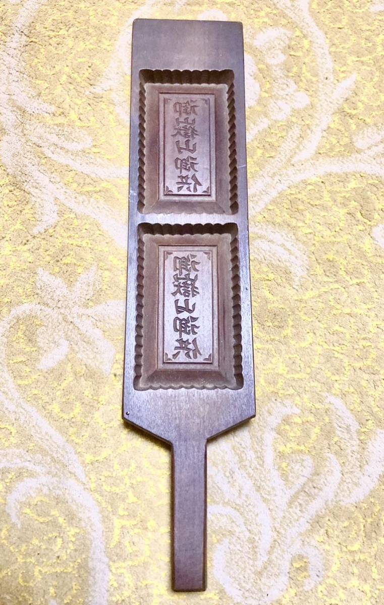 御嶽神社に奉納されたお菓子等の型として使用された物と考えられます。長さ約40センチ程。