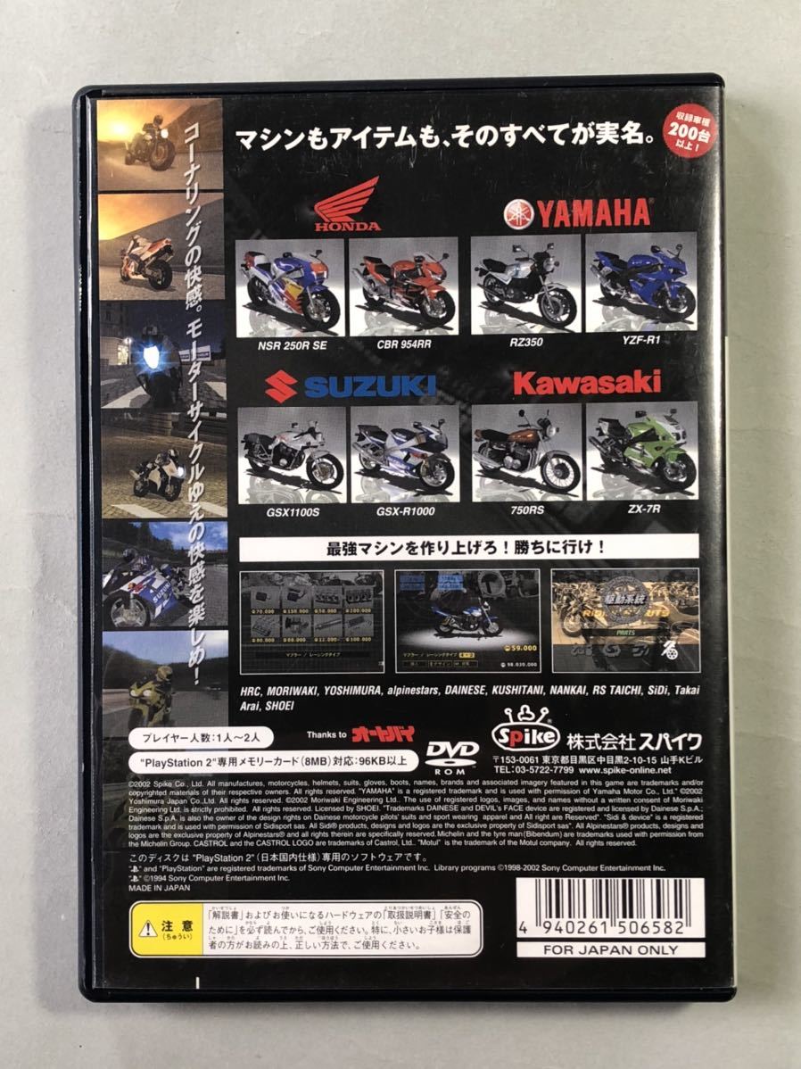 PS2ソフト RS〜ライディングスピリッツ〜「コーナリングの快感。モーターサイクルゆえの快感を楽しめ!」スパイクです。ケースに擦れ、細かな傷、線傷、線状や点状のへこみ跡があります。ディスクのデータ読み取り面に擦れ、細かな傷があります。起動、動作確認済みです。写真のモノが全てです。新品をお探しの方や神経質な方の入札はご遠慮下さい。ノークレーム・ノーリターンで、お願いします。入札よろしくお願いいたします。 C04-294-041405