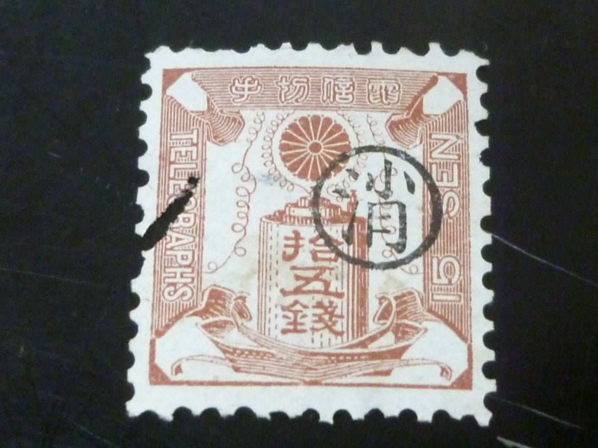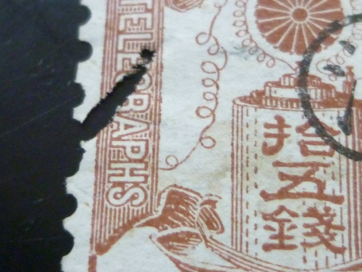 23 P 【日本 みほん切手】 1885年 電信 #電7 15銭 NG(糊落) 左辺キズ有