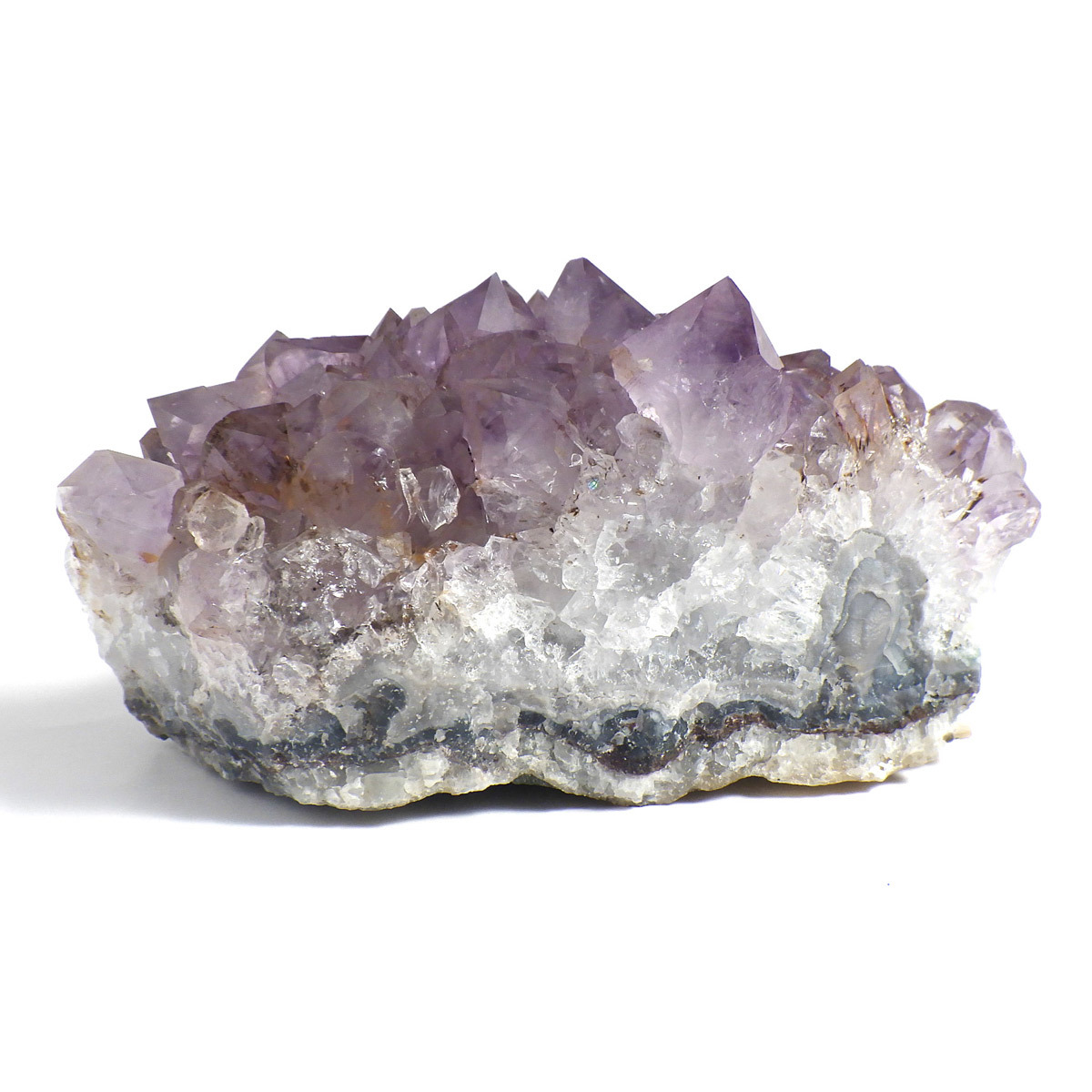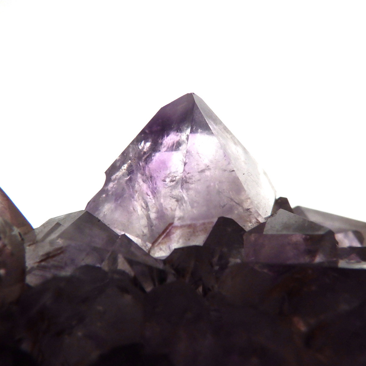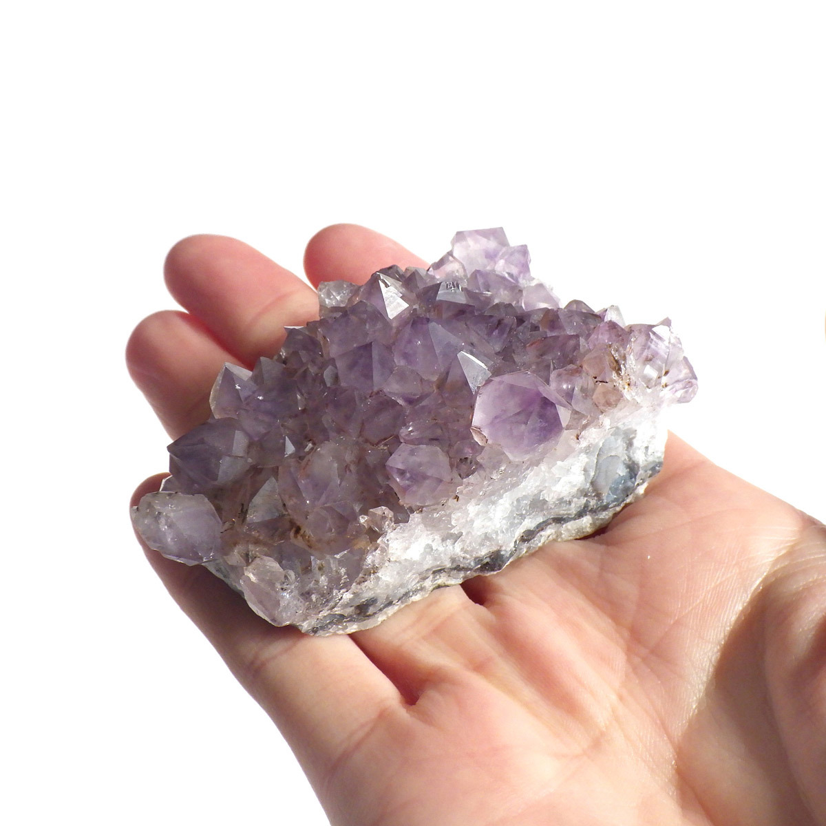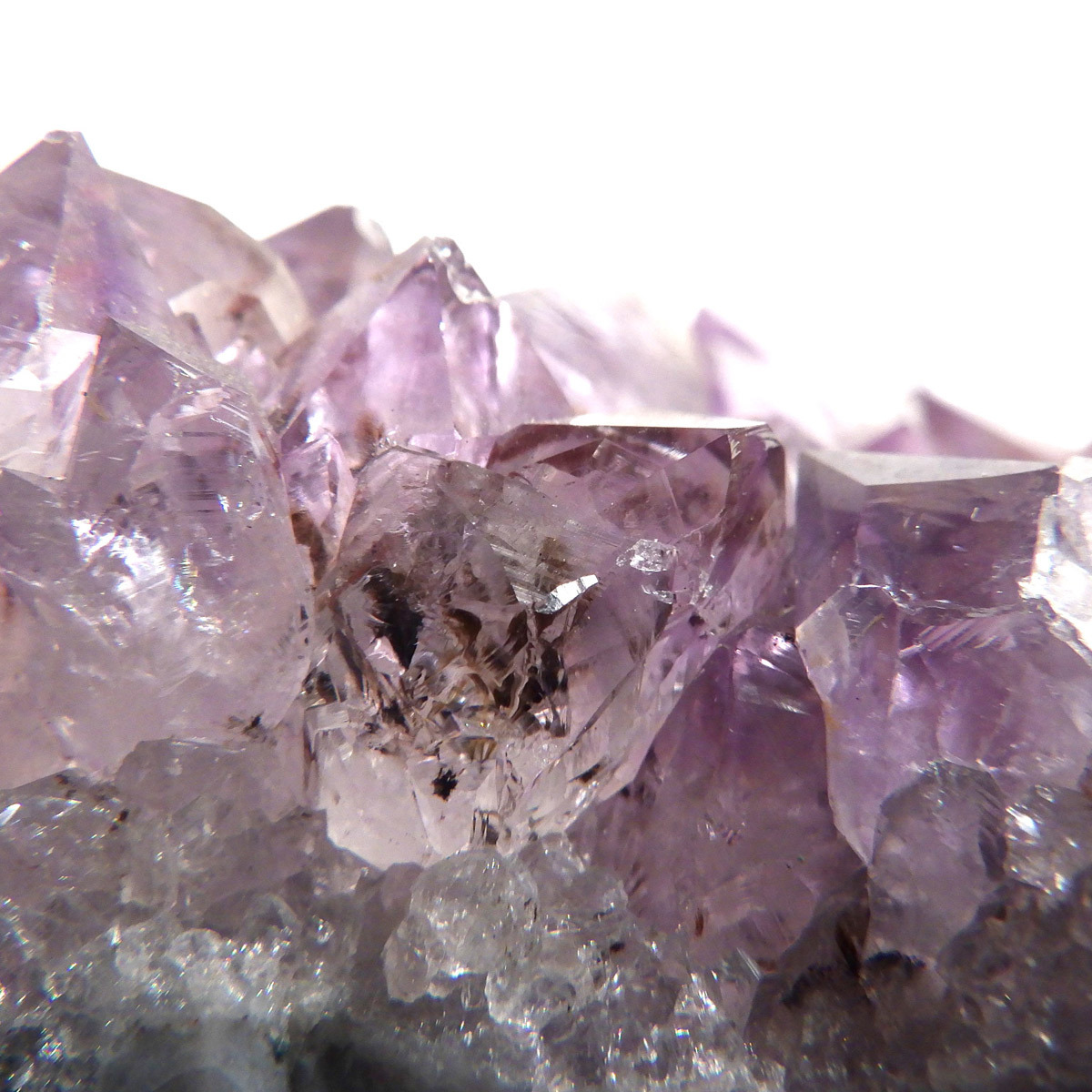 ブラジル産のアメジストクラスターです。クラスターとしては小ぶりですが、優しく落ち着いた色合いの結晶で内包物を観察して楽しむ事ができます。ちょこんと机の上などにも置いていただけるちょうど良い大きさだと思います。