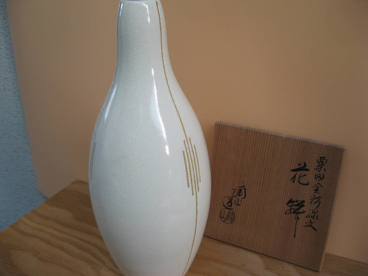 伊東陶山 (日展) 粟田金彩線文 花瓶