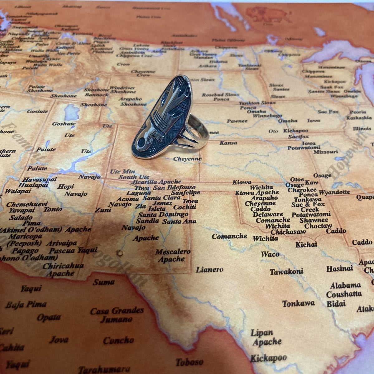 バードモチーフのインディアンジュエリーと思われるシルバーリングでございます。