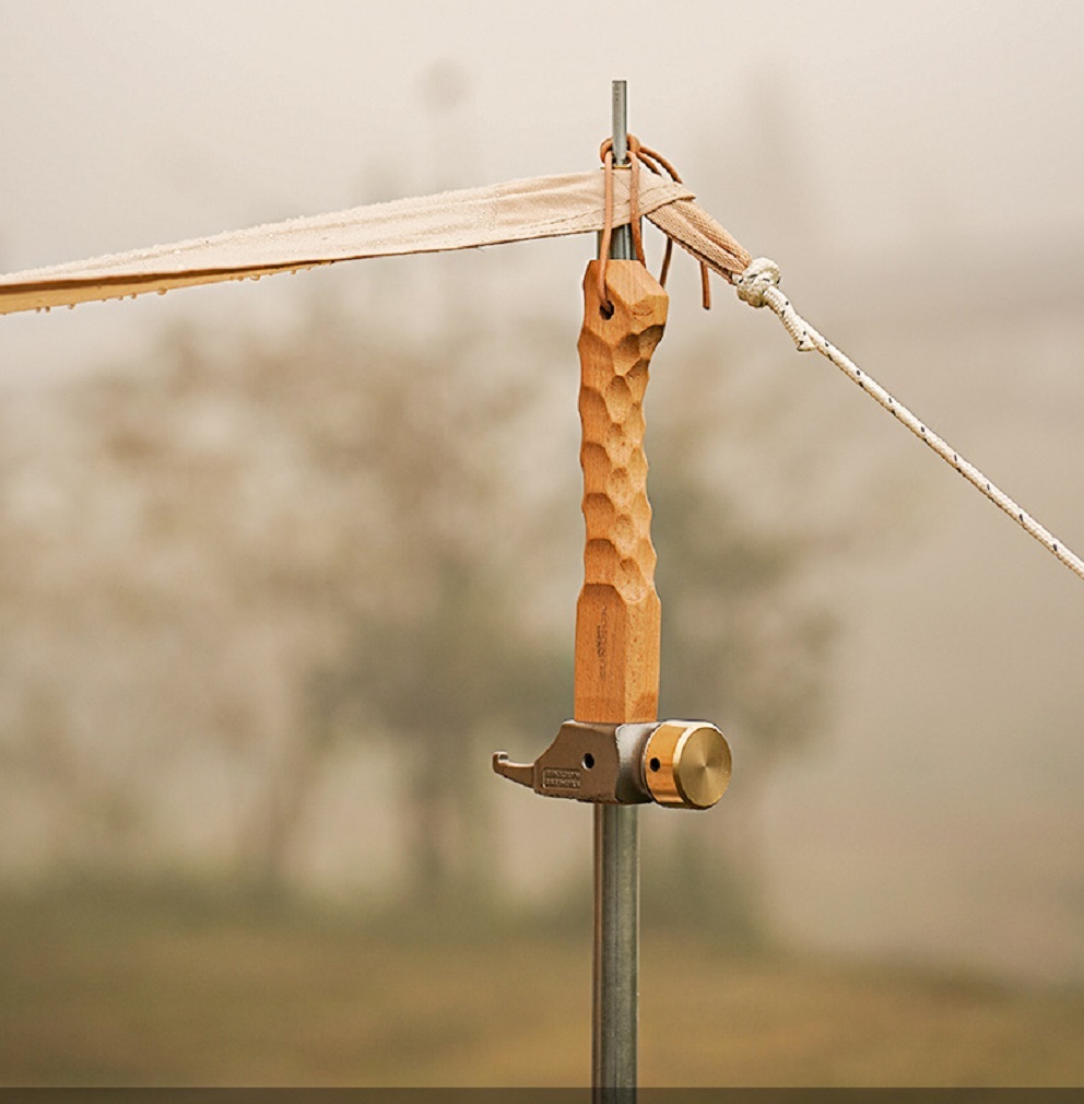 〇牛皮のストラップ付なので、打ち込み時に腕に巻いてご利用頂いたり、フック掛けとしてもご利用でき、キャンプ中でも見失うことなく使えます。