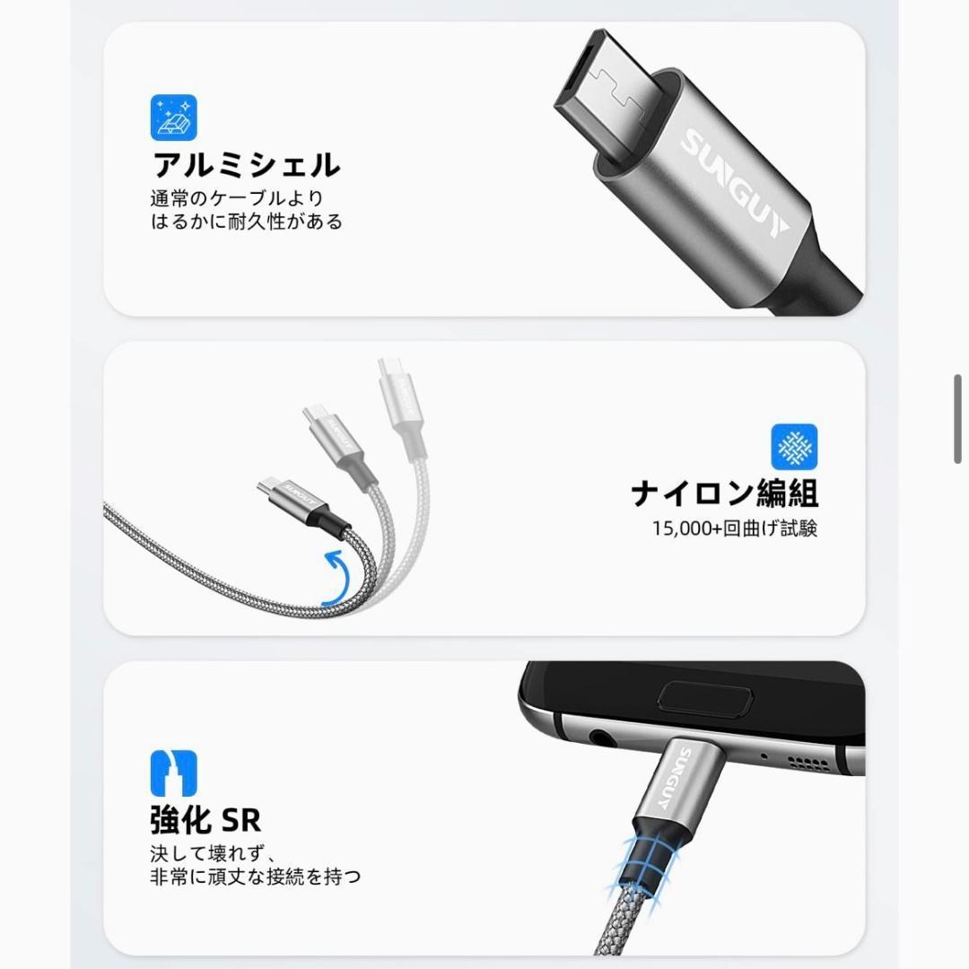 SUNGUY 急速充電 高速データ転送 高耐久性 ナイロン編み 3本 15cm